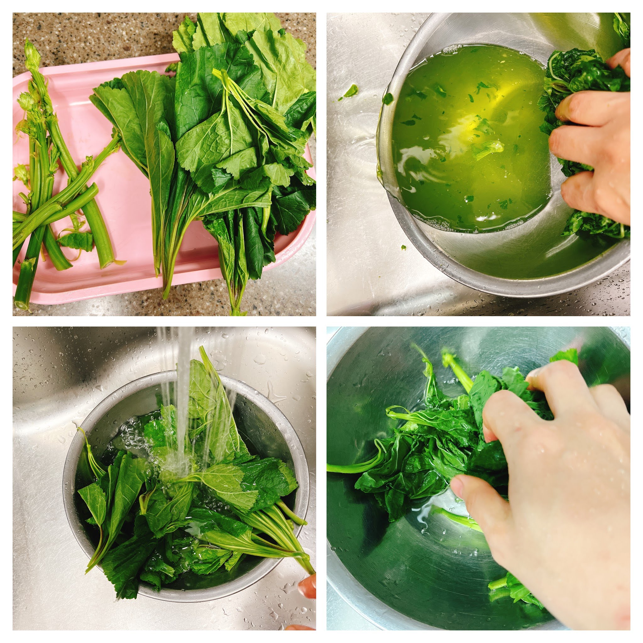 초록물이 빠질때까지 찬물로 헹궈요