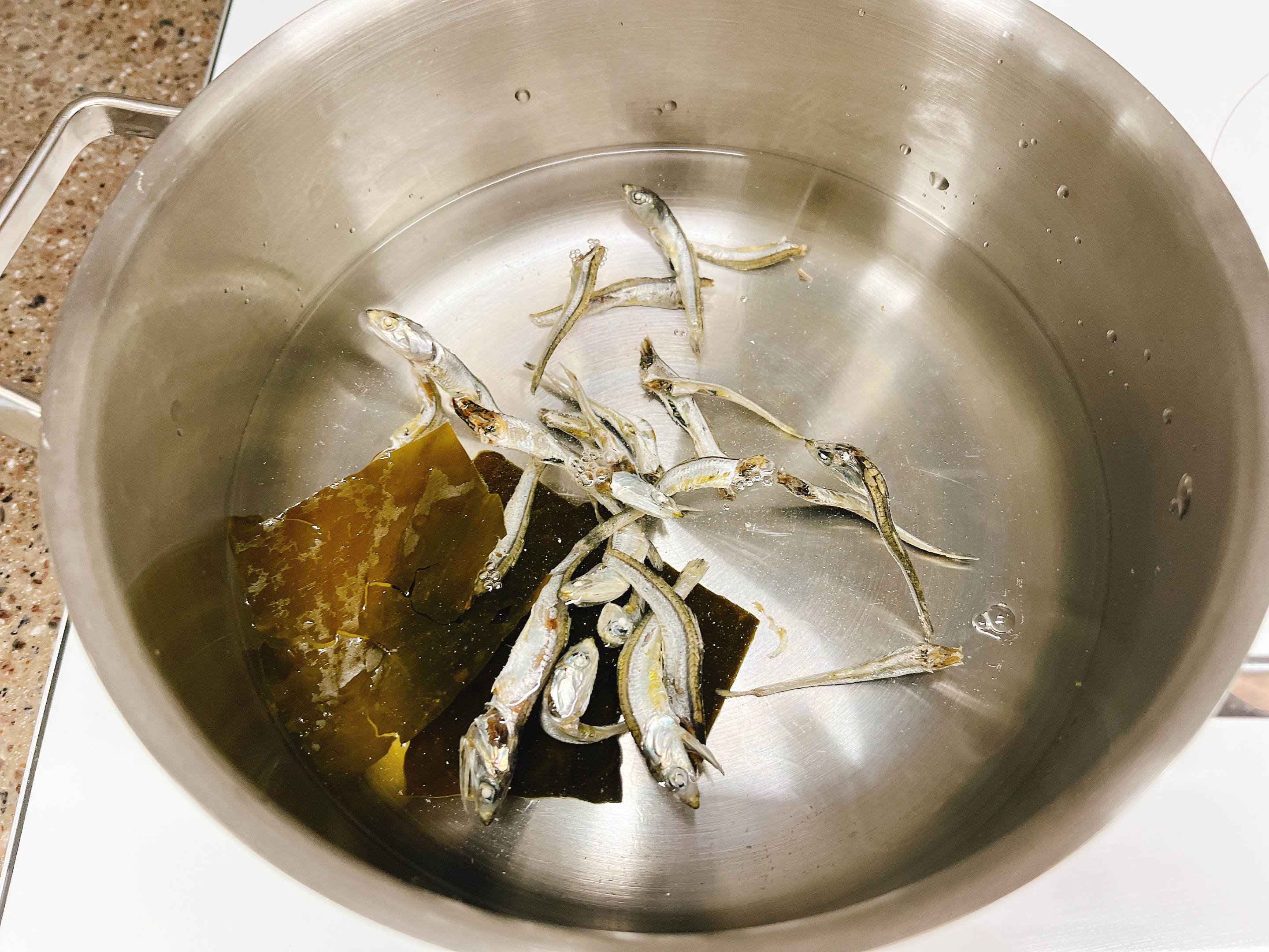 생수에 멸치와 다시마를 넣고