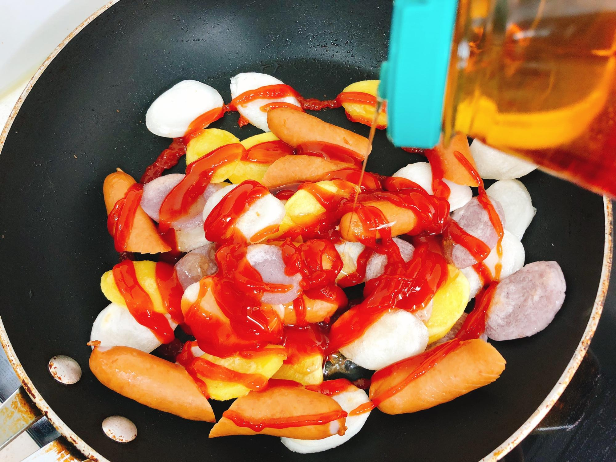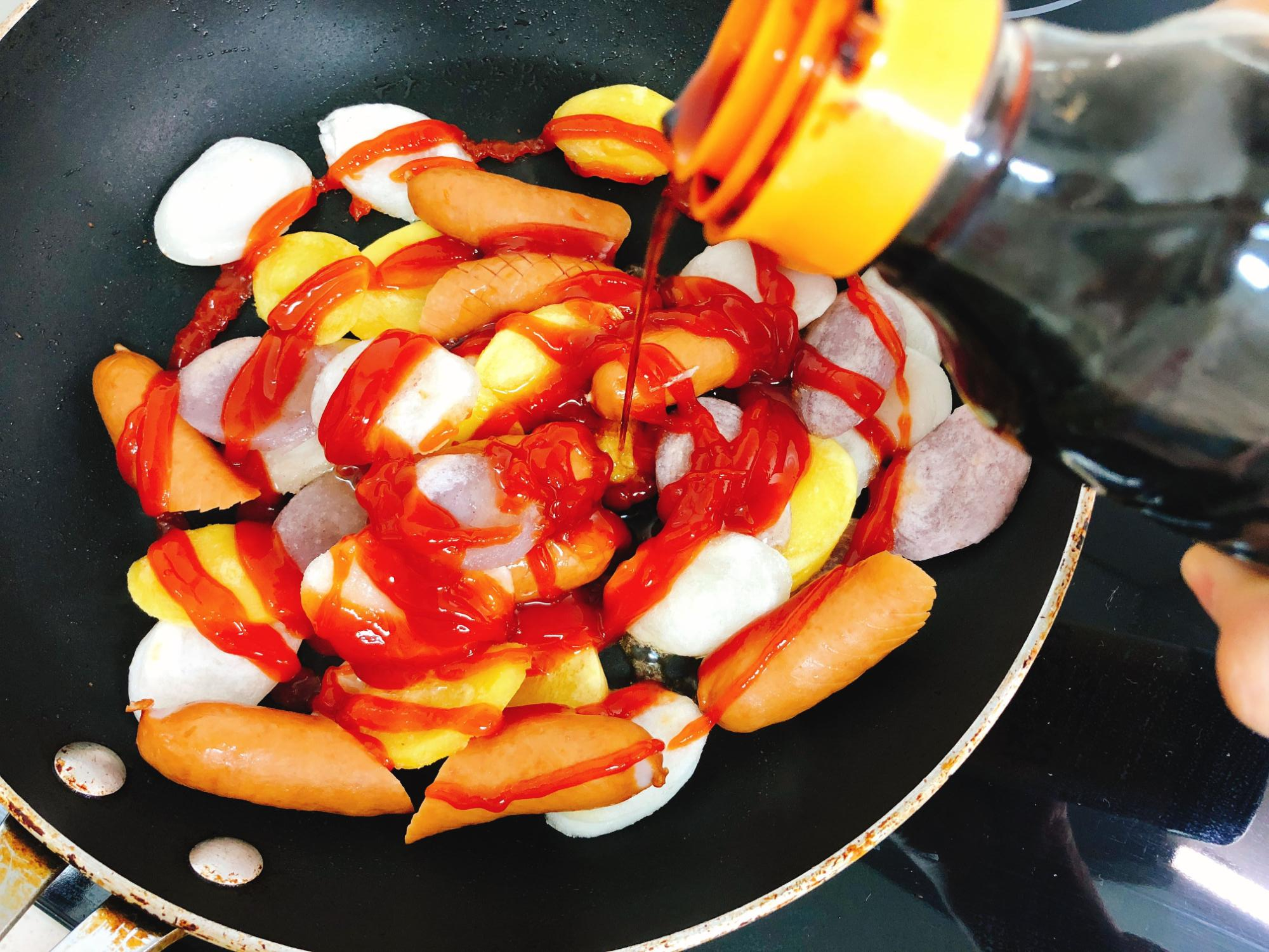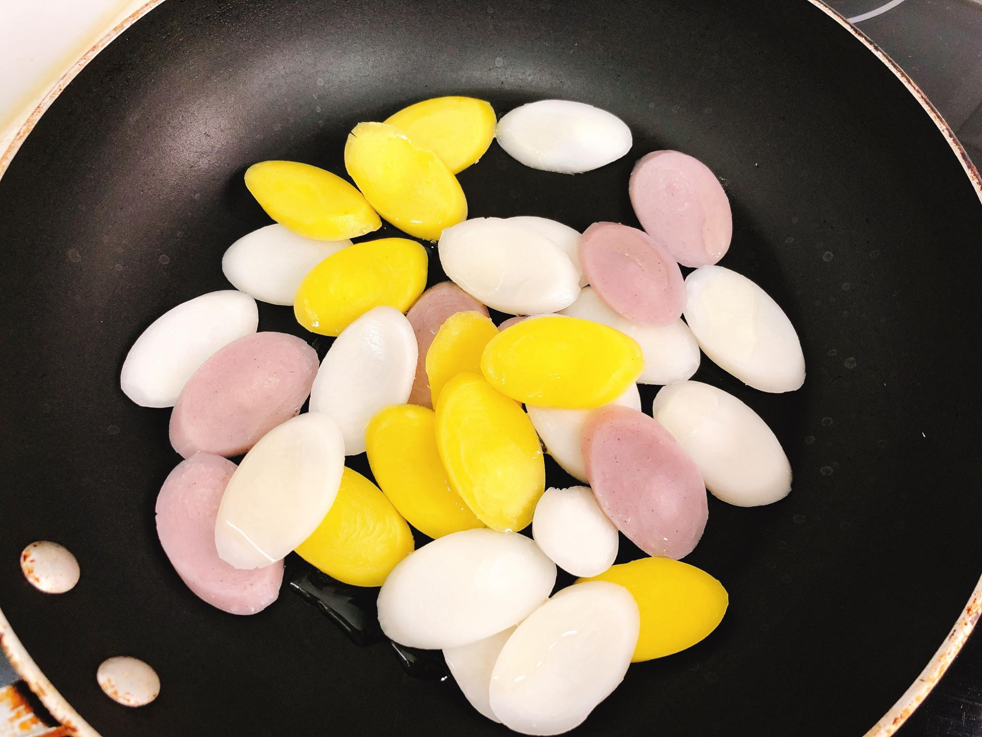 떡국떡은 예열한 팬에 기름과 함께 넣어