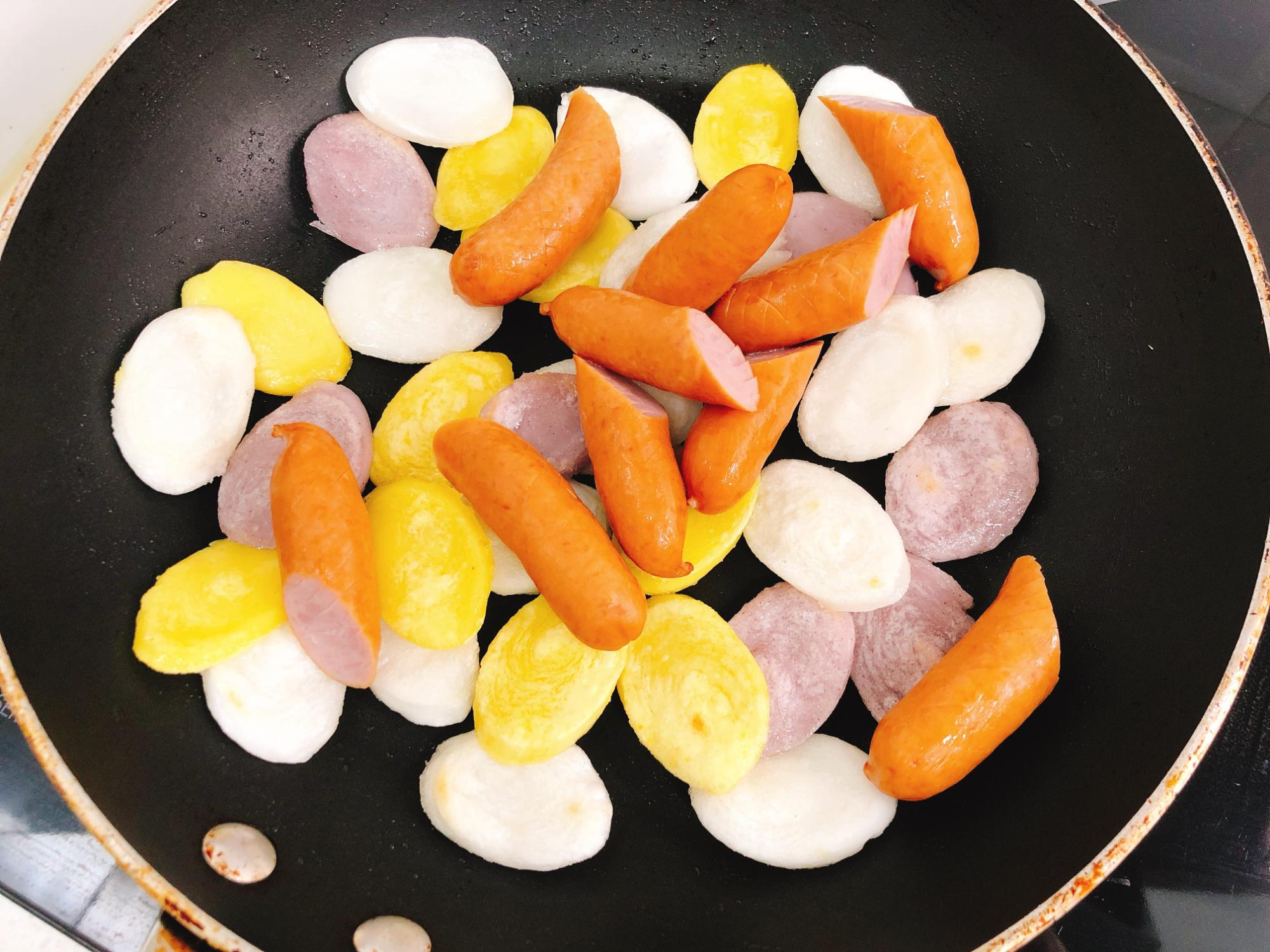 떡국떡은 예열한 팬에 기름과 함께 넣어