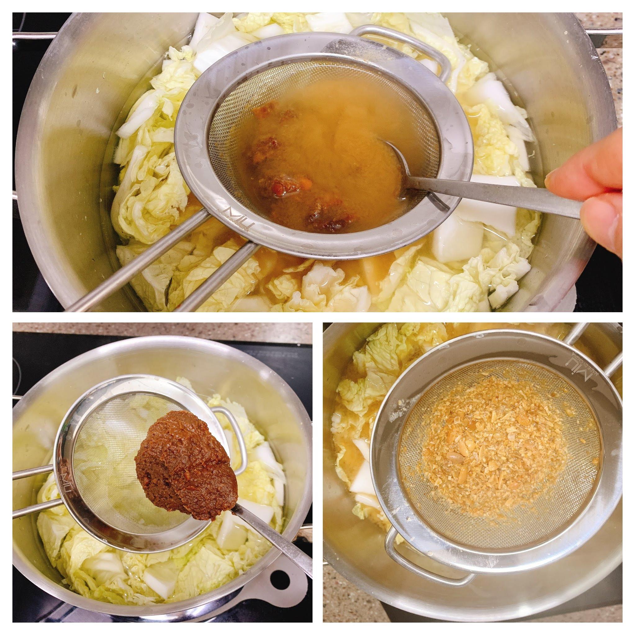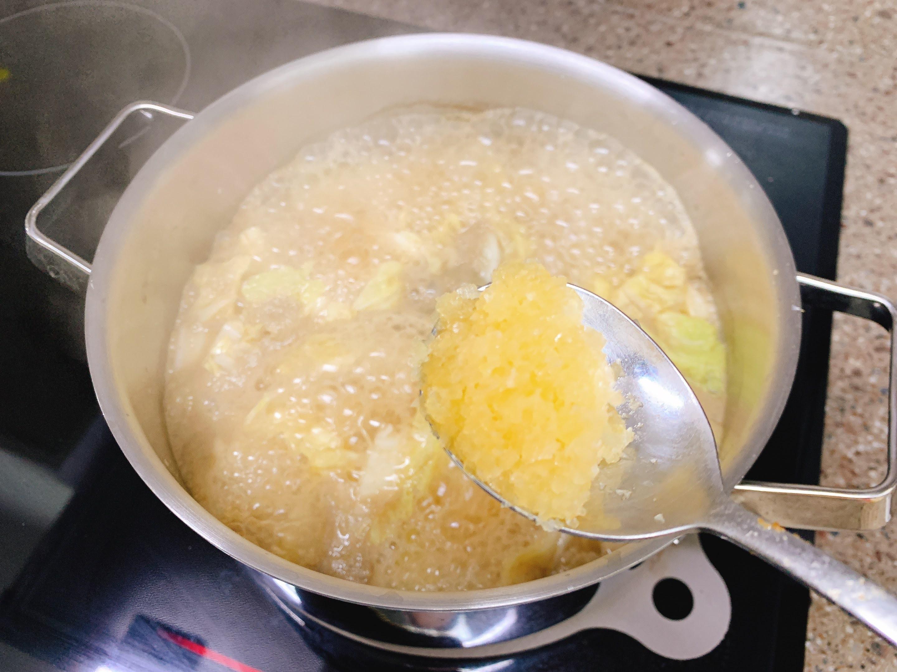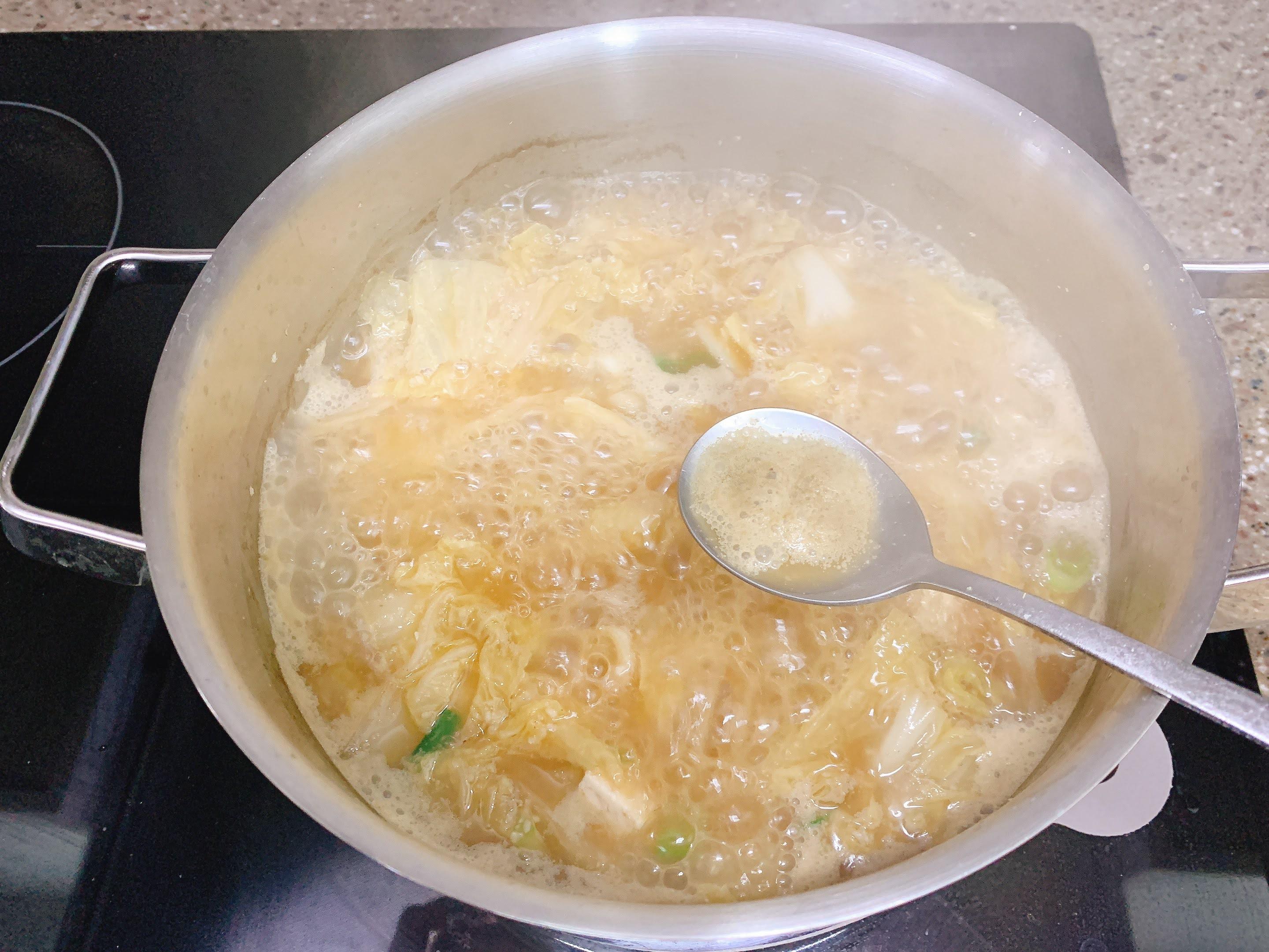 두꺼운 배추줄기가 부드러워질때까지 끓여줄거예요