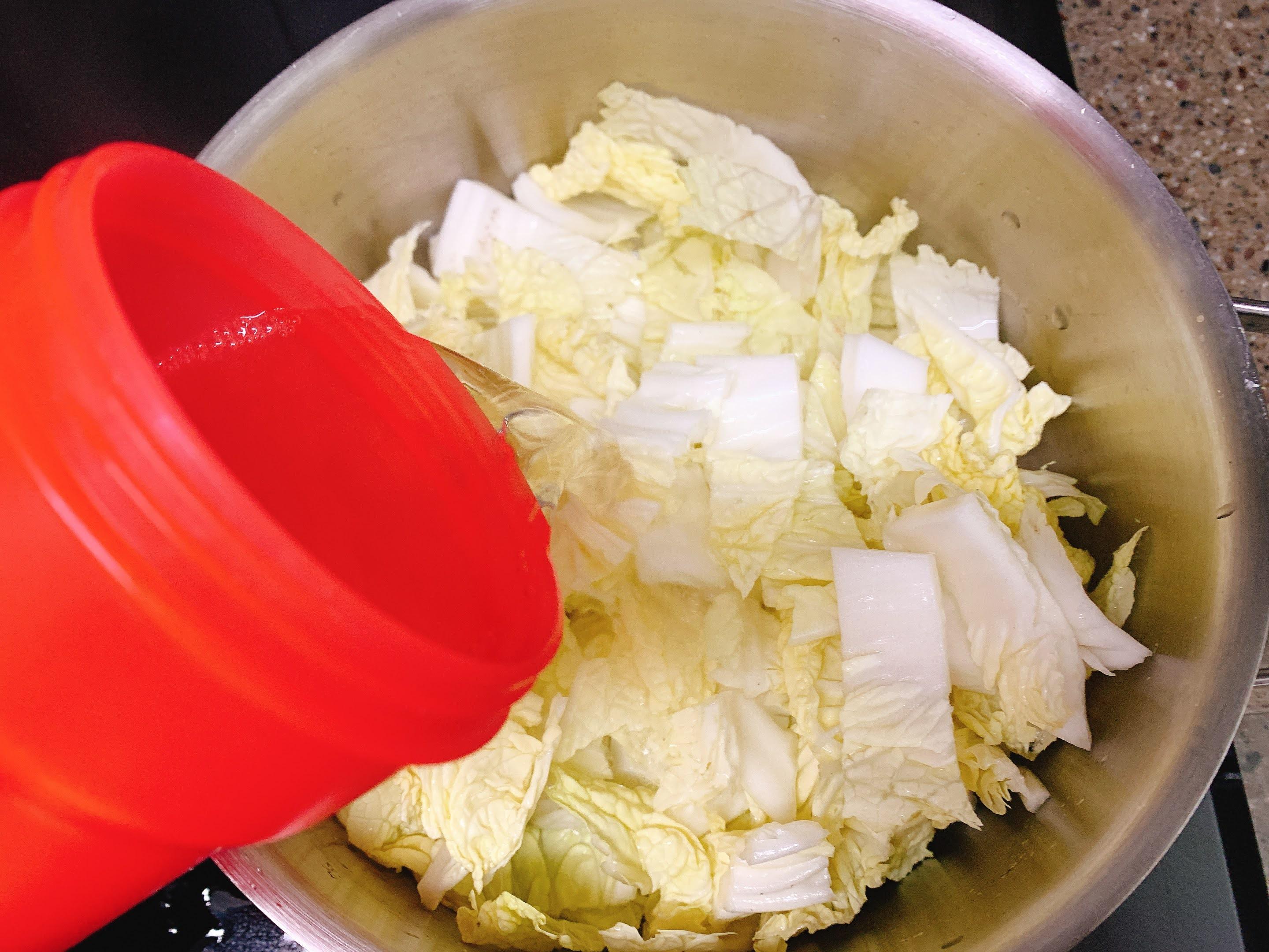 완성된 멸치육수를 알배추가 거의 잠길 정도로 부어줬어요