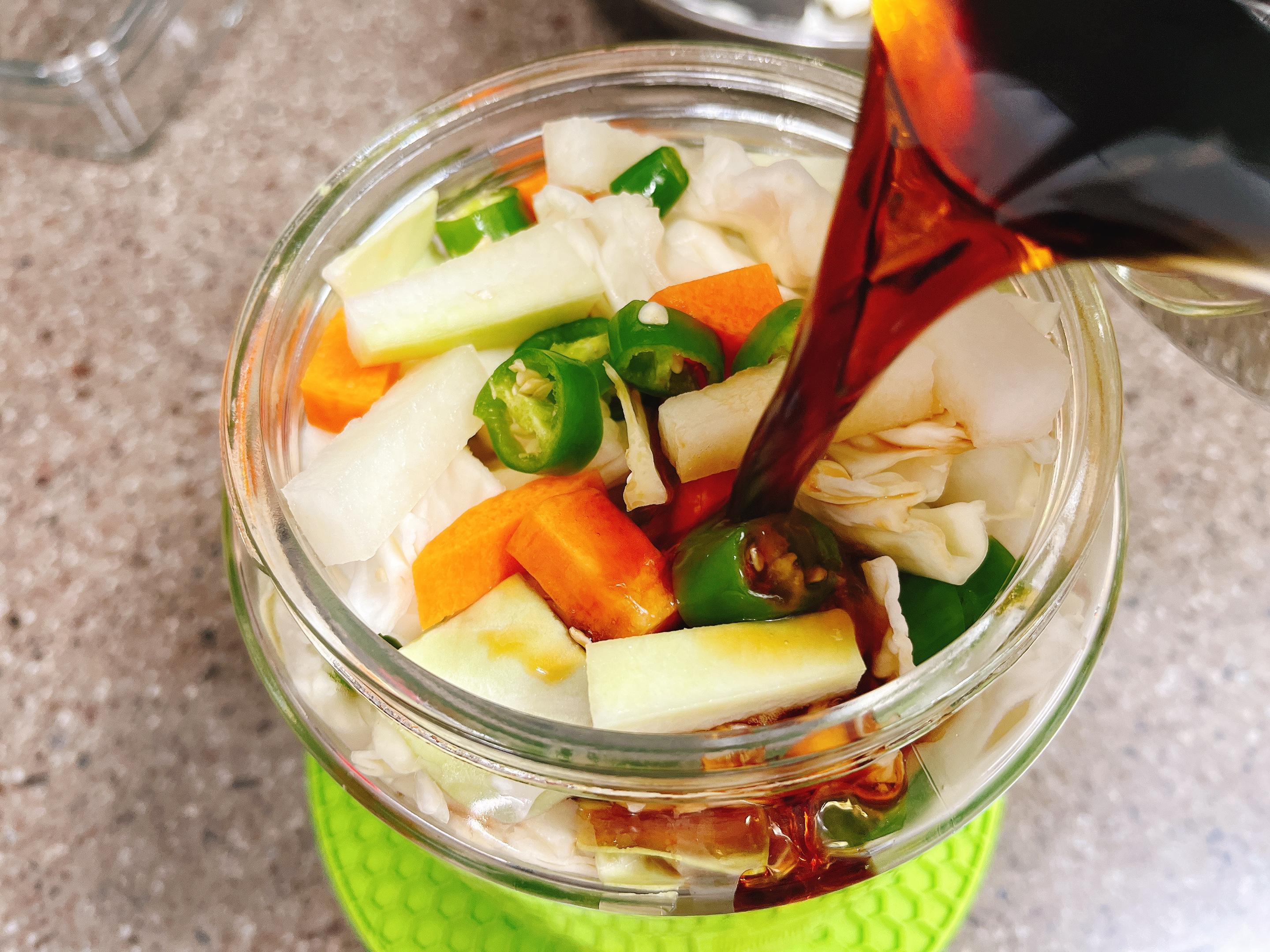 접시같은 것(누름그릇)을 올려두면 재료가 잠겨요
