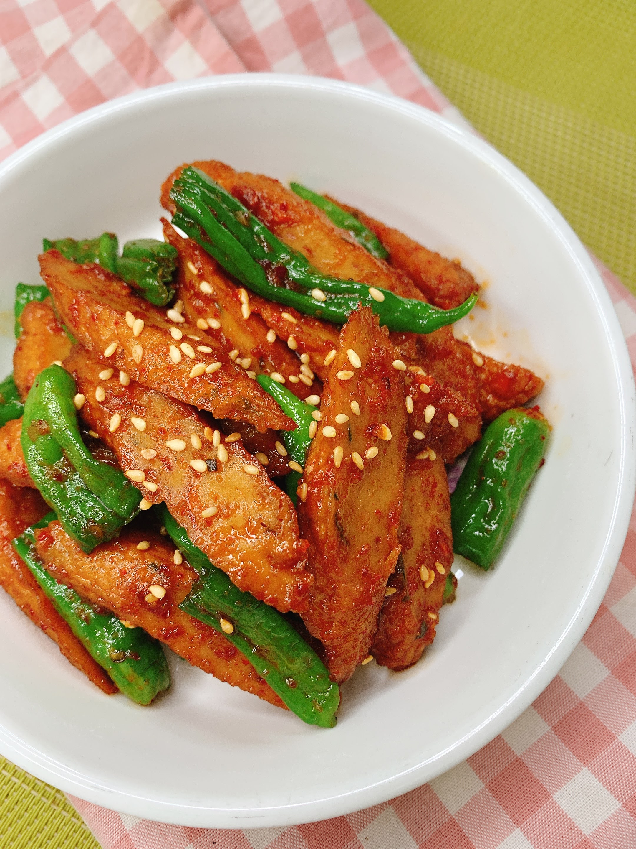 식감을 보완하기 위해 꽈리고추를 넣었는데