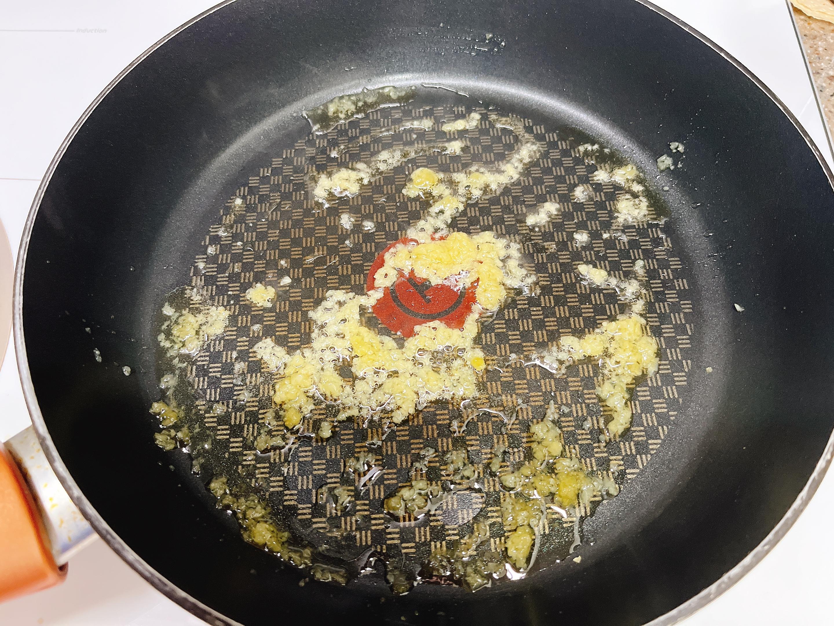 식용유 2스푼, 다진마늘 반스푼 넣어
