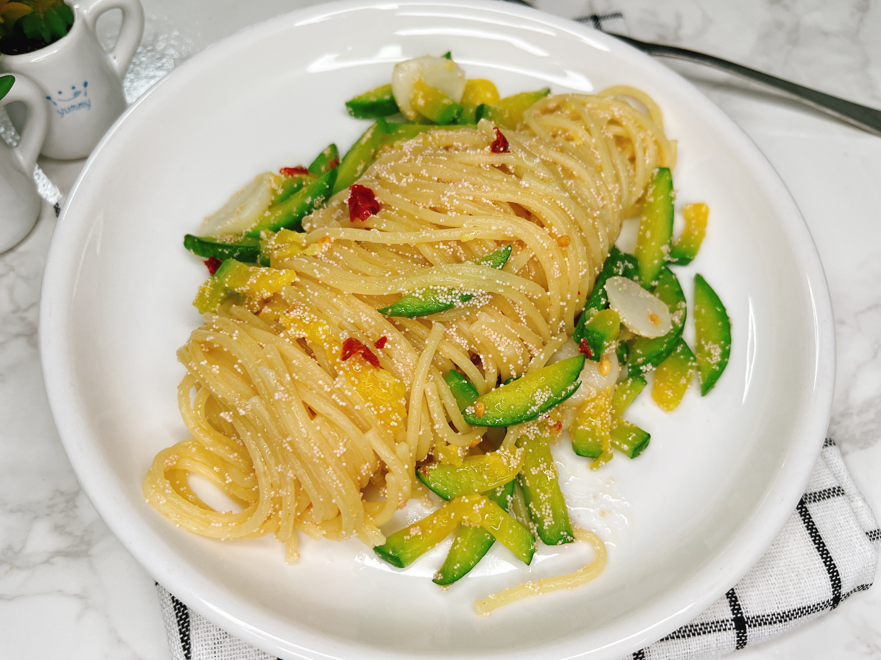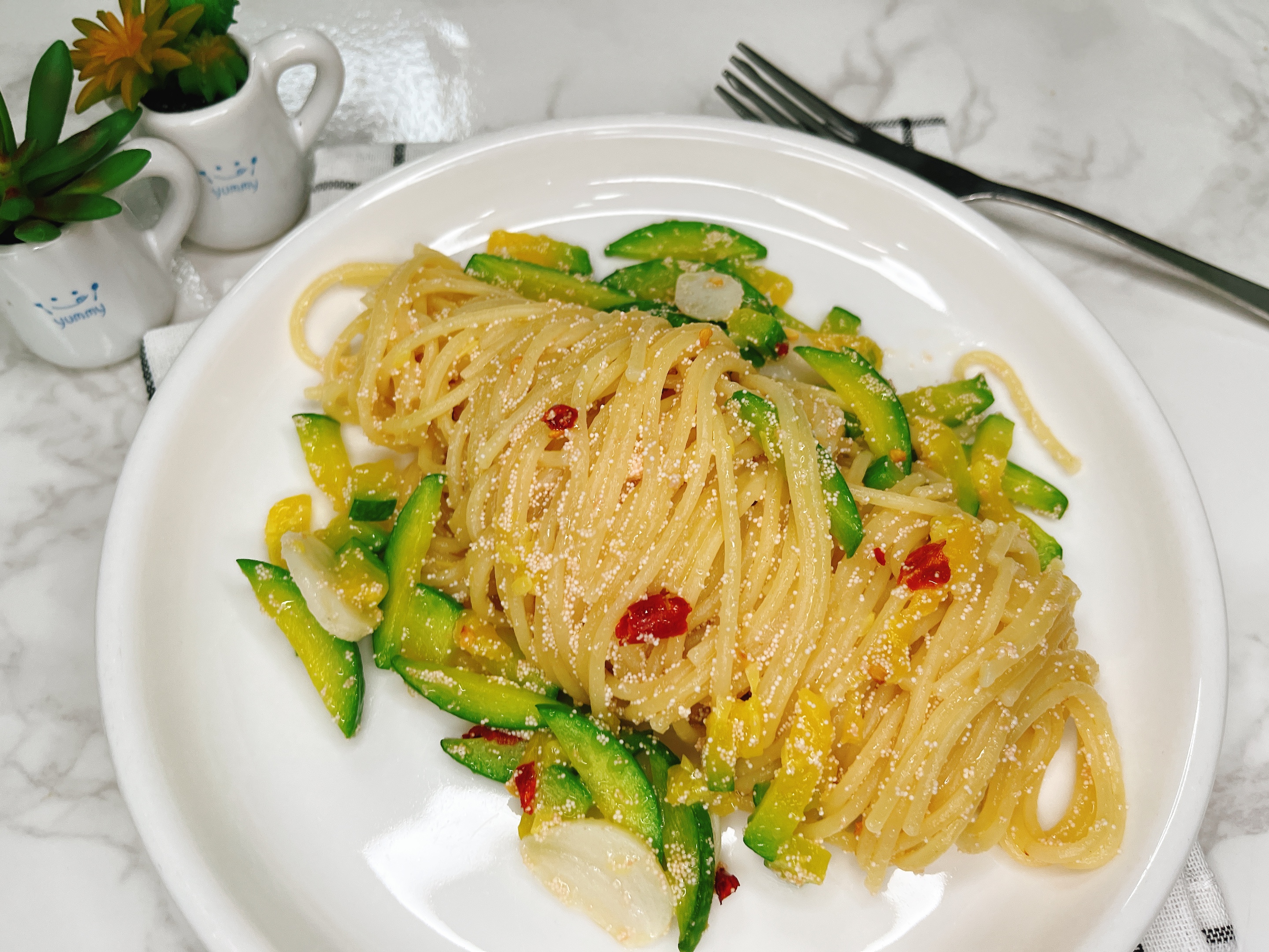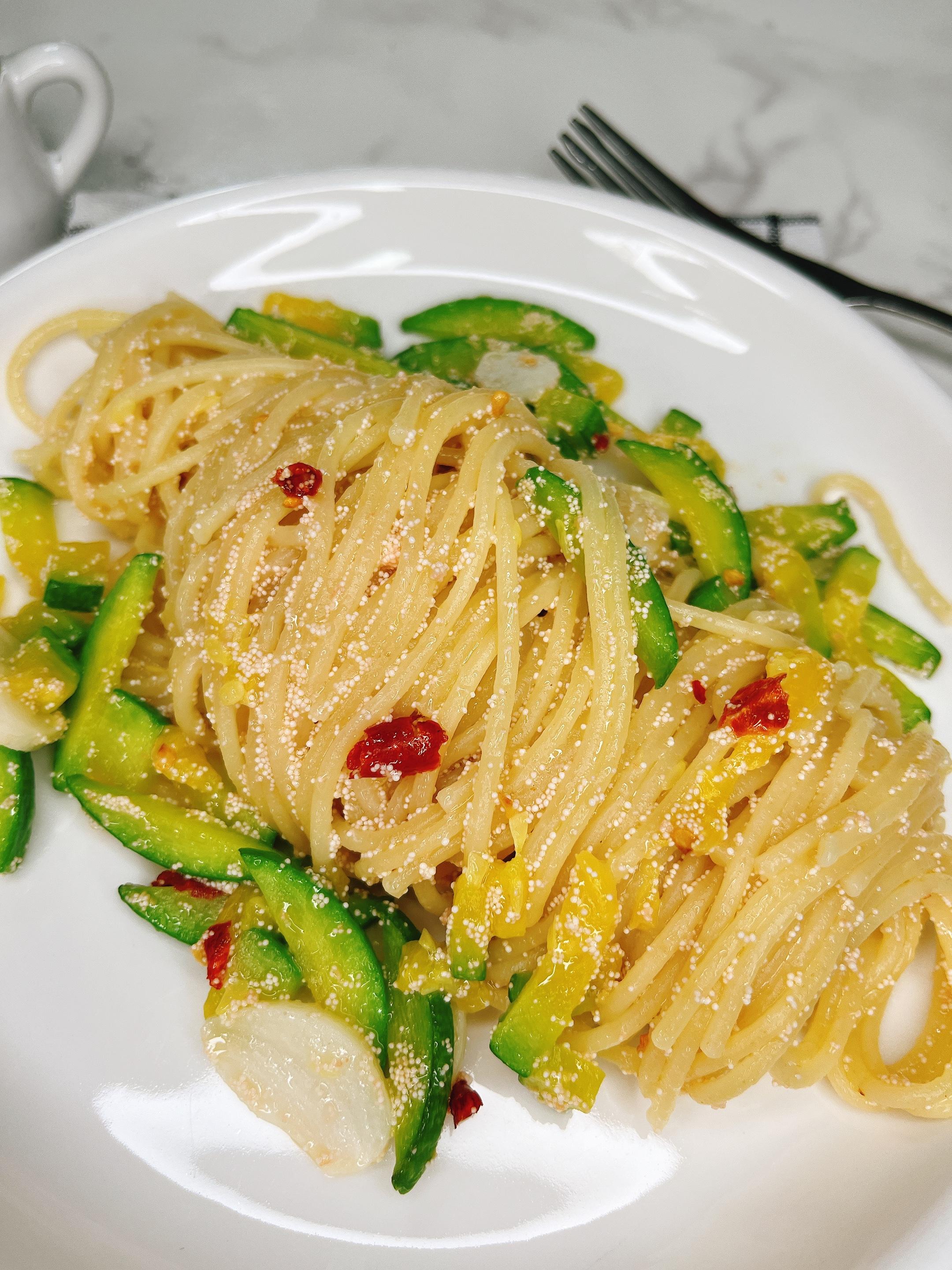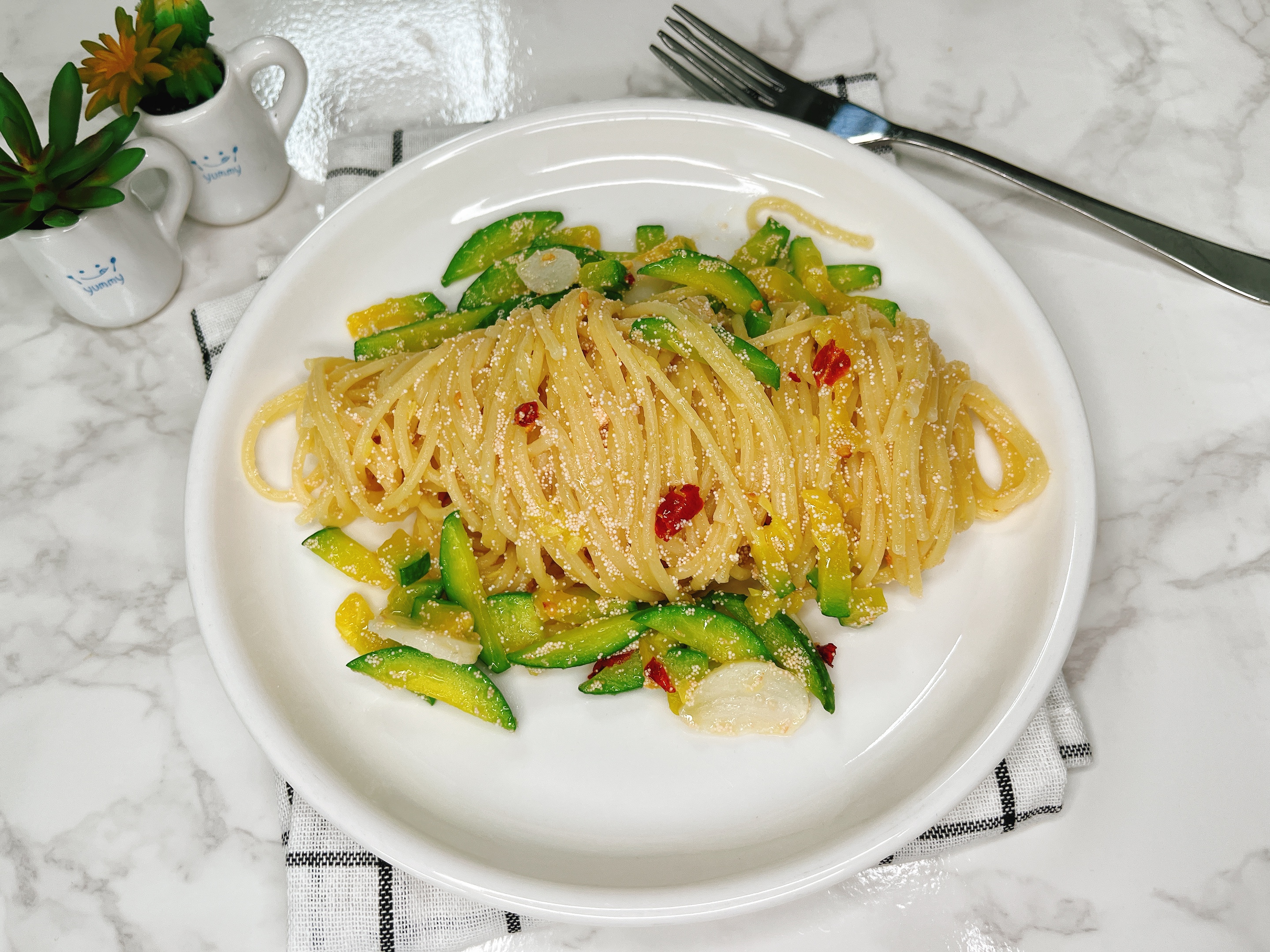 3, 면이 삶아지는 동안 마늘과 애호박을 볶아요