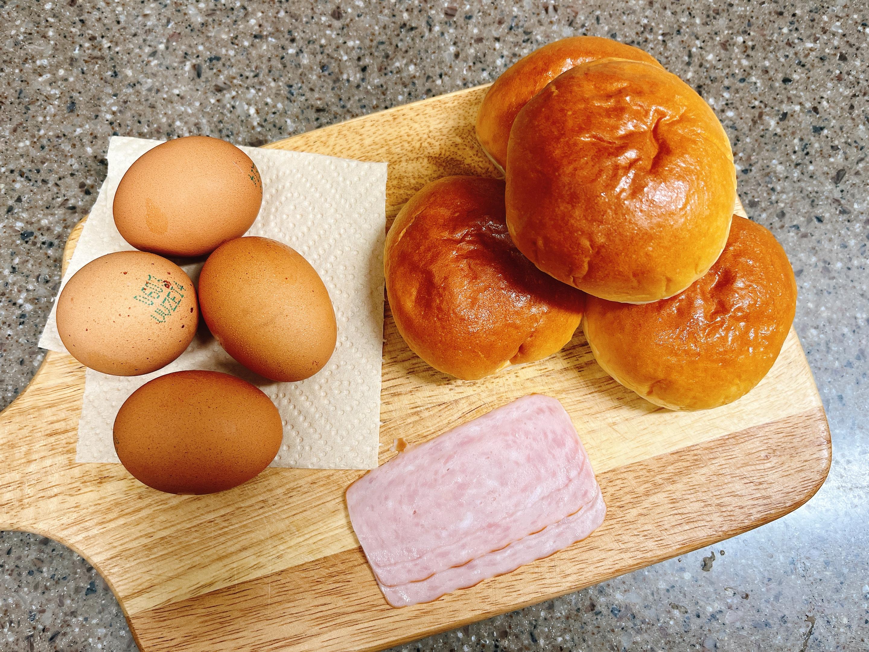 계란, 모닝빵, 햄이나 베이컨을 준비해요