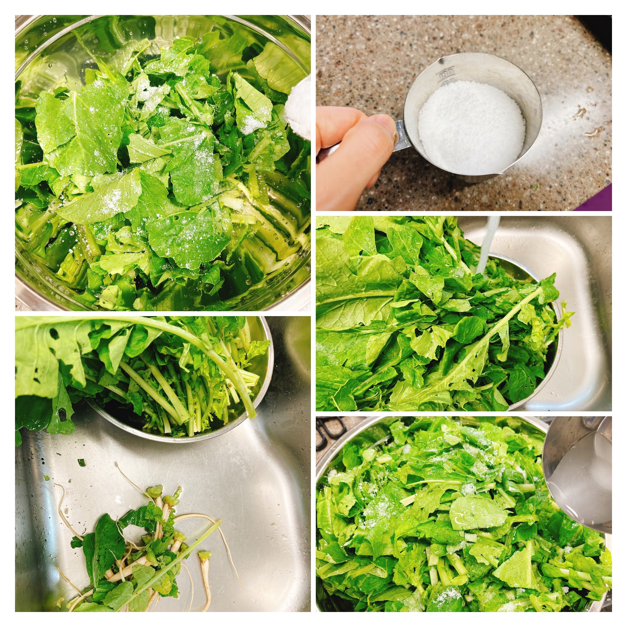 열무를 3~4번에 나눠 소금을 층층이 뿌려주고