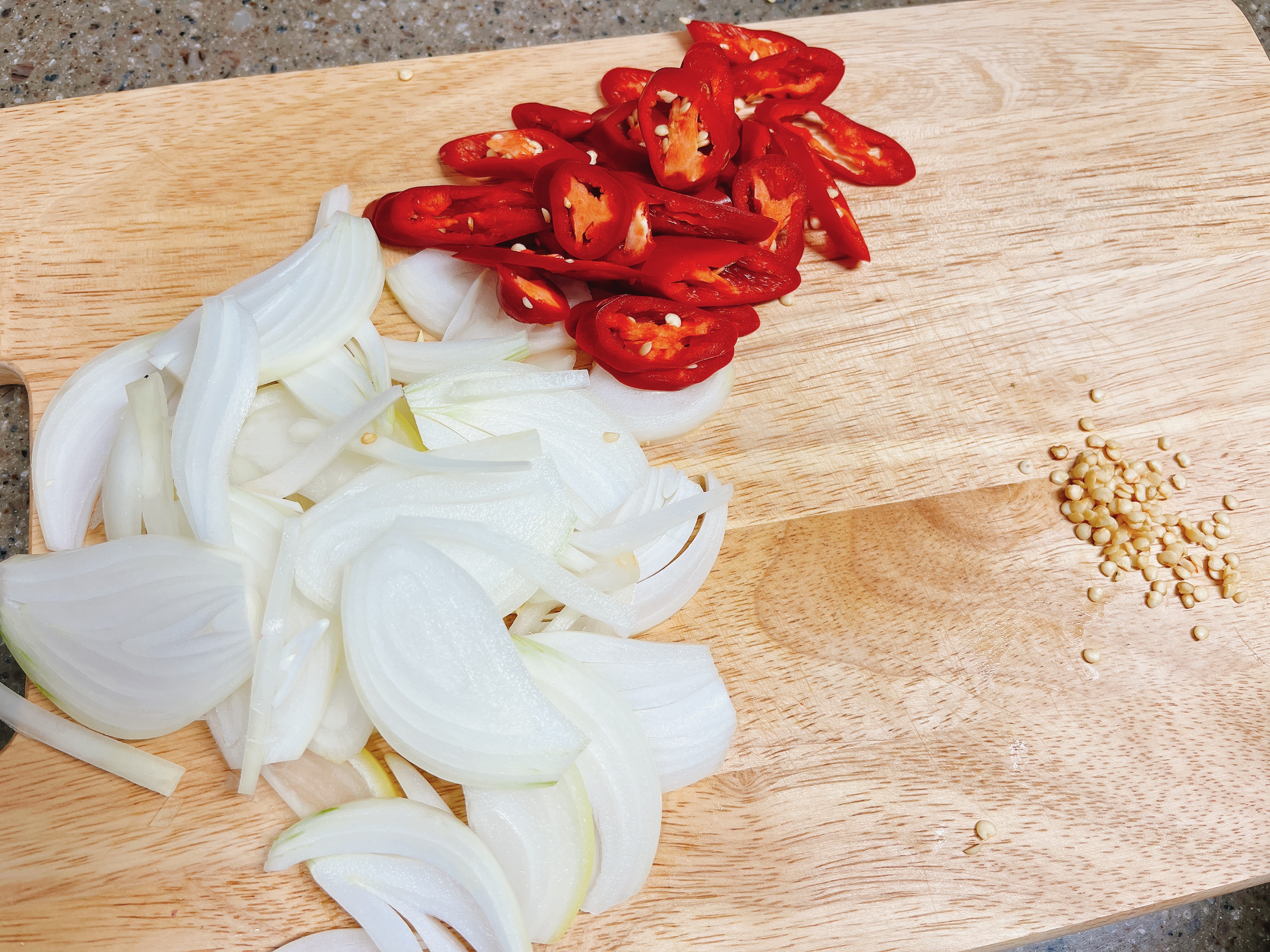양파 (중) 1개, 홍고추 2~3개
