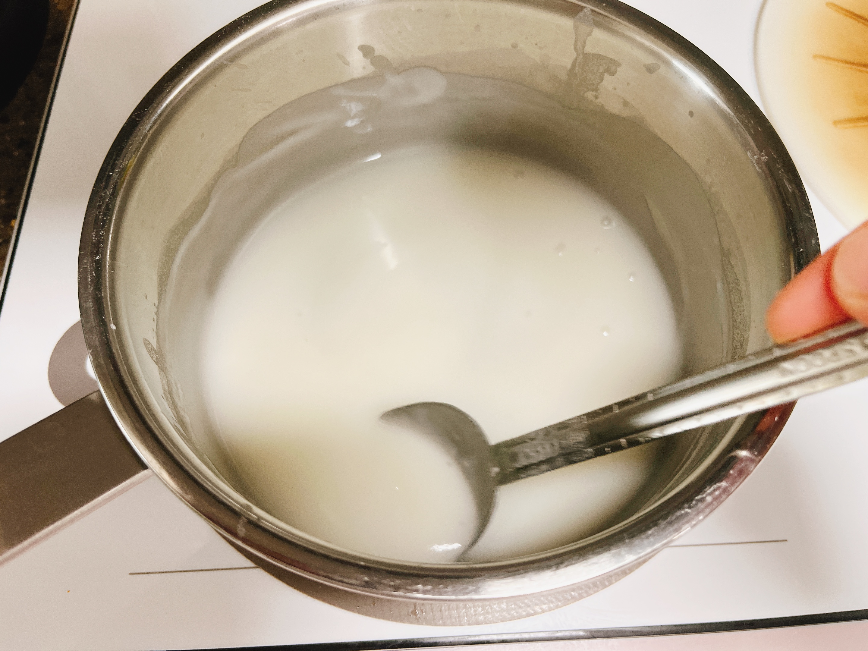 불에 올려 눌러붙고 뭉치지 않도록 저어가며 끓여요