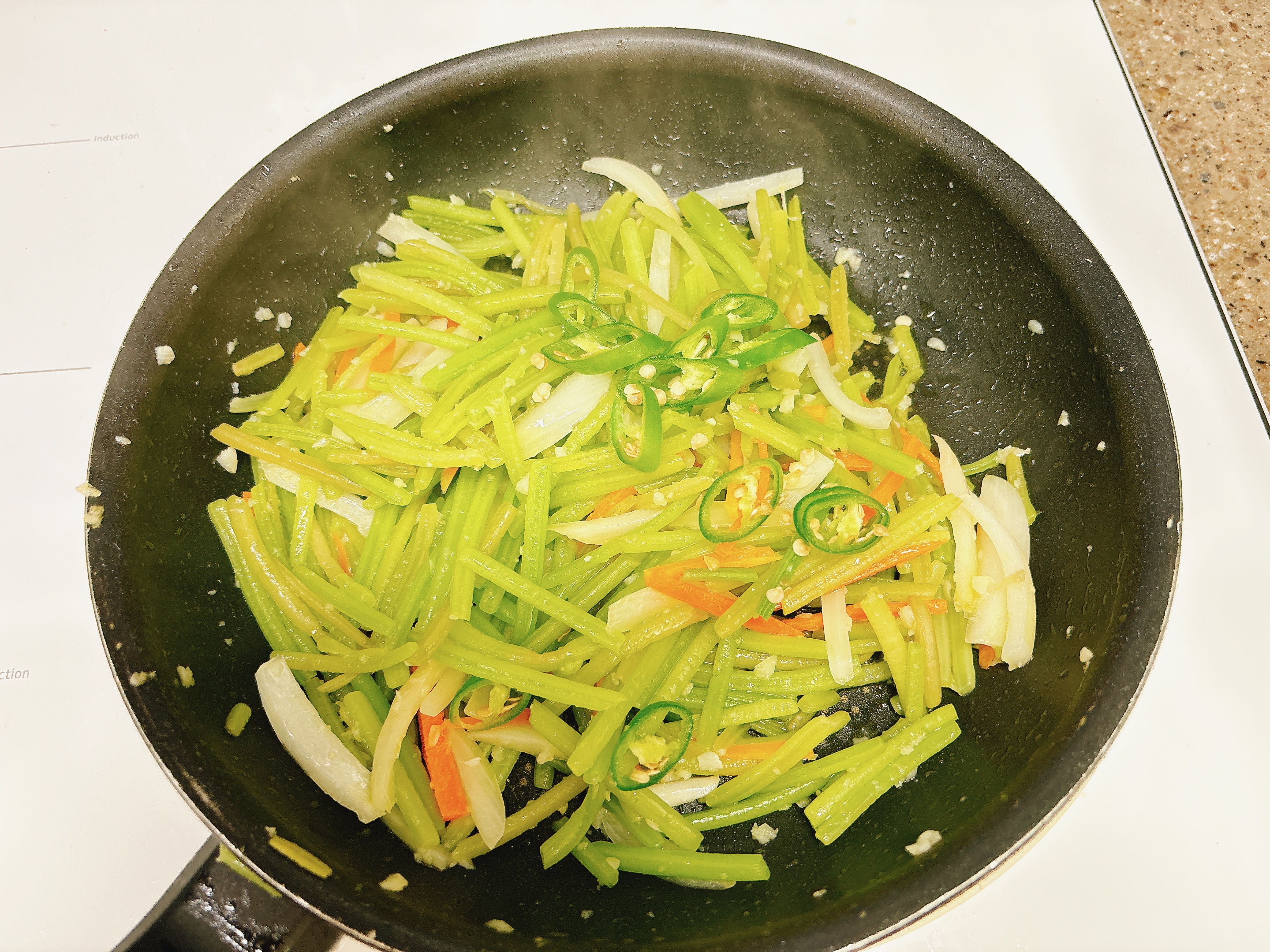 고구마줄기를 싸고 있는 껍질을 벗겨야