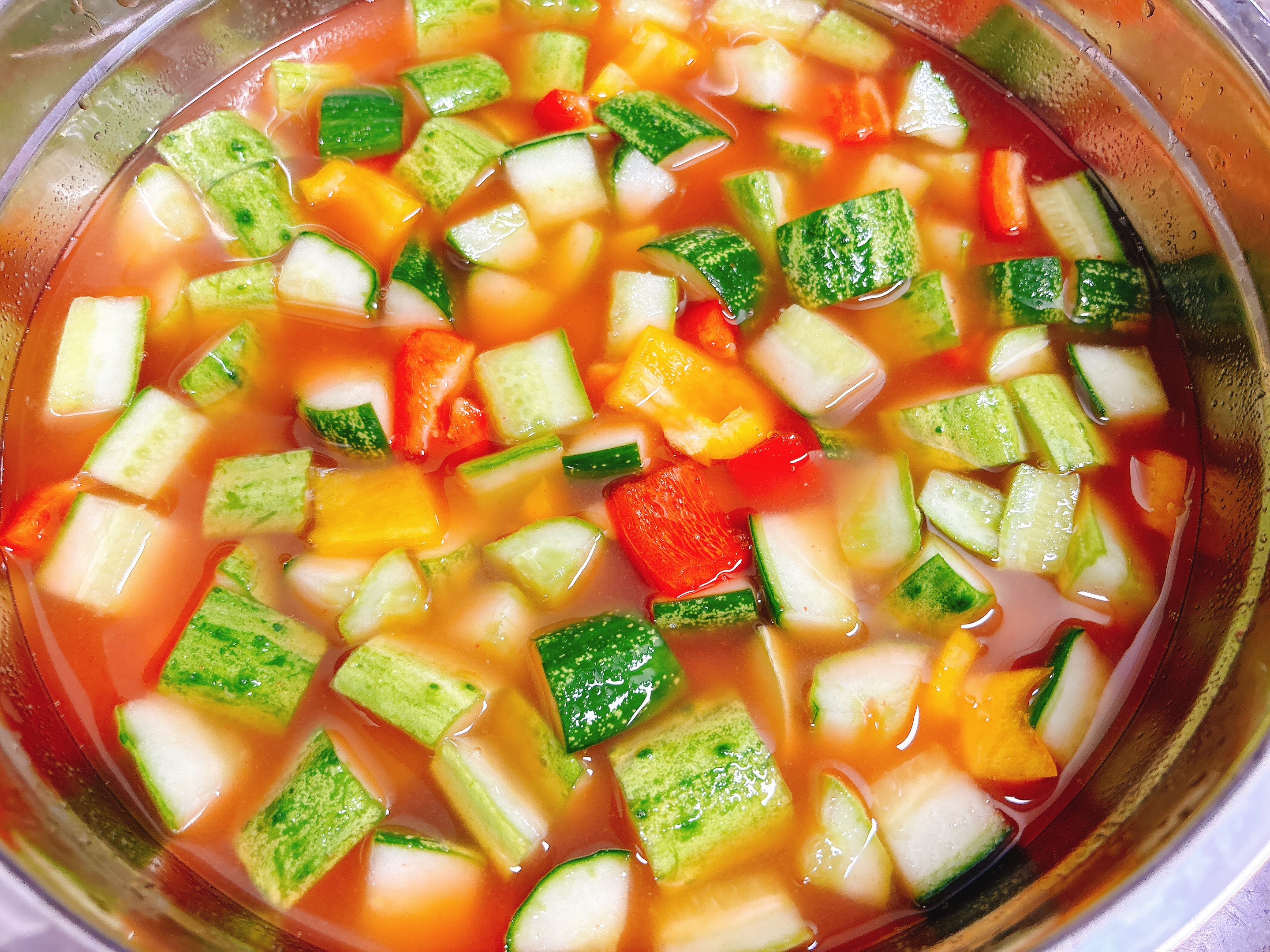 1리터의 물에 동전육수 3개로 육수를 끓여 식히고,