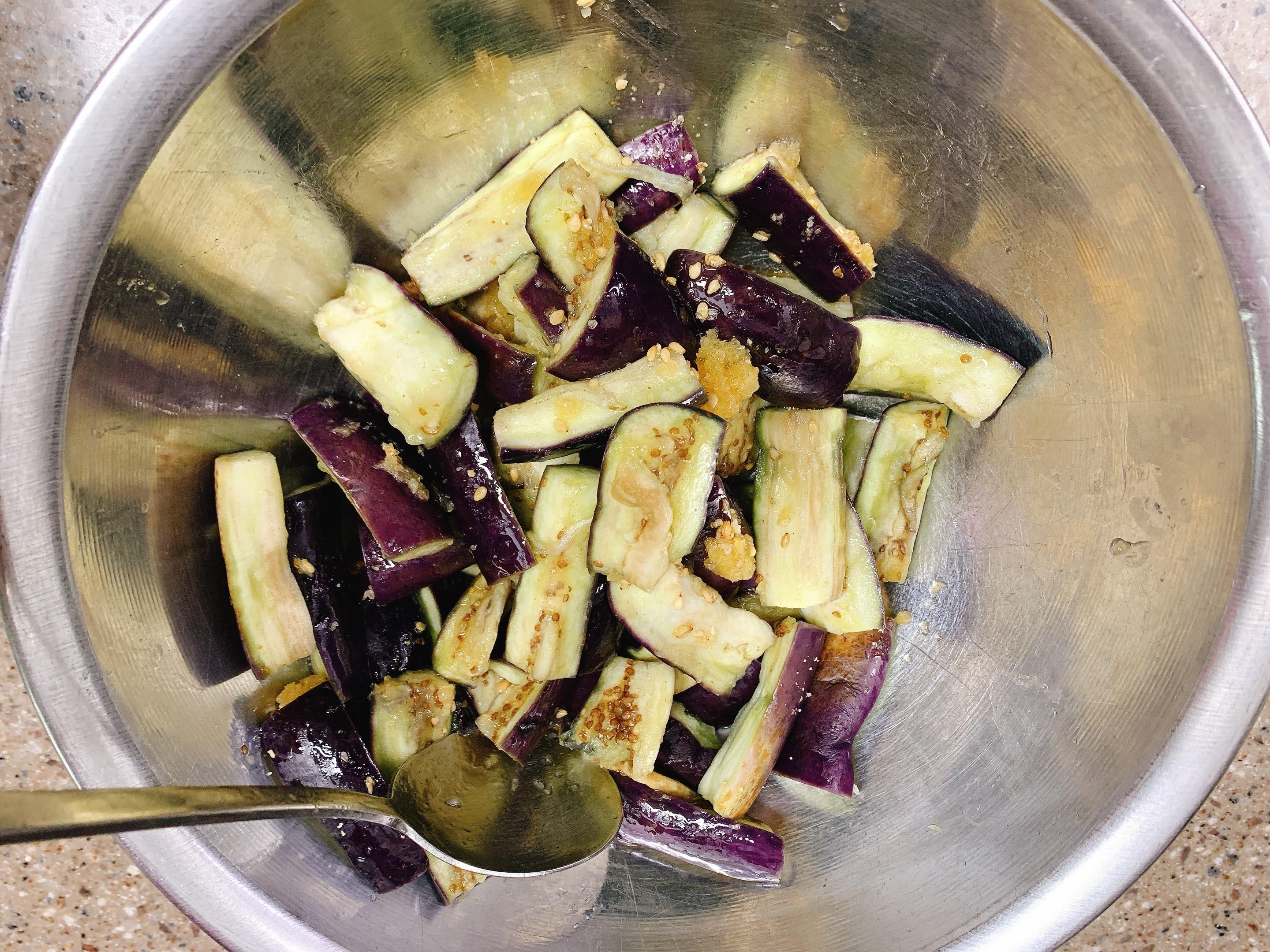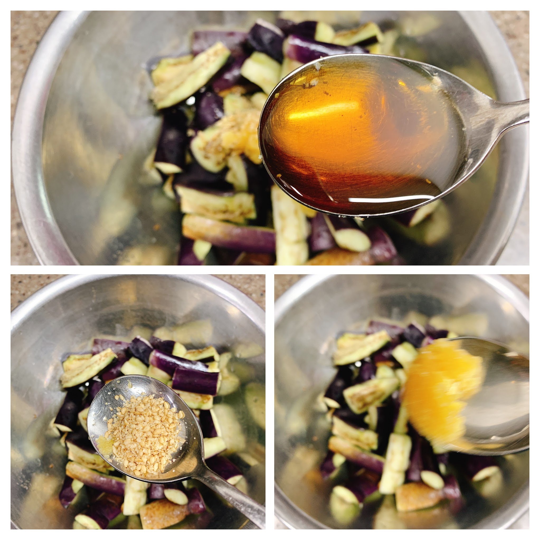 쪄진 가지를 버무릴 볼에 옮겨 담아요