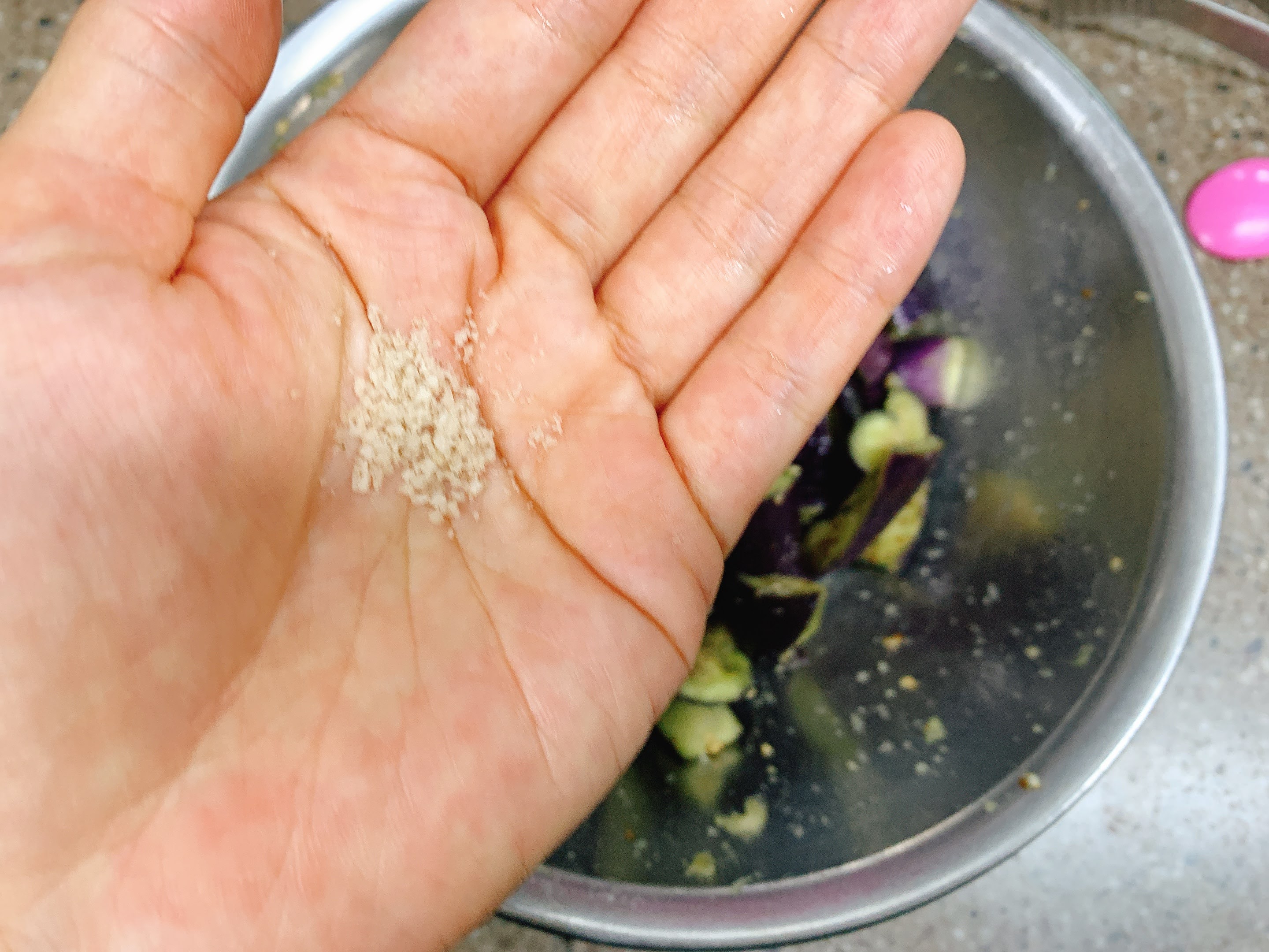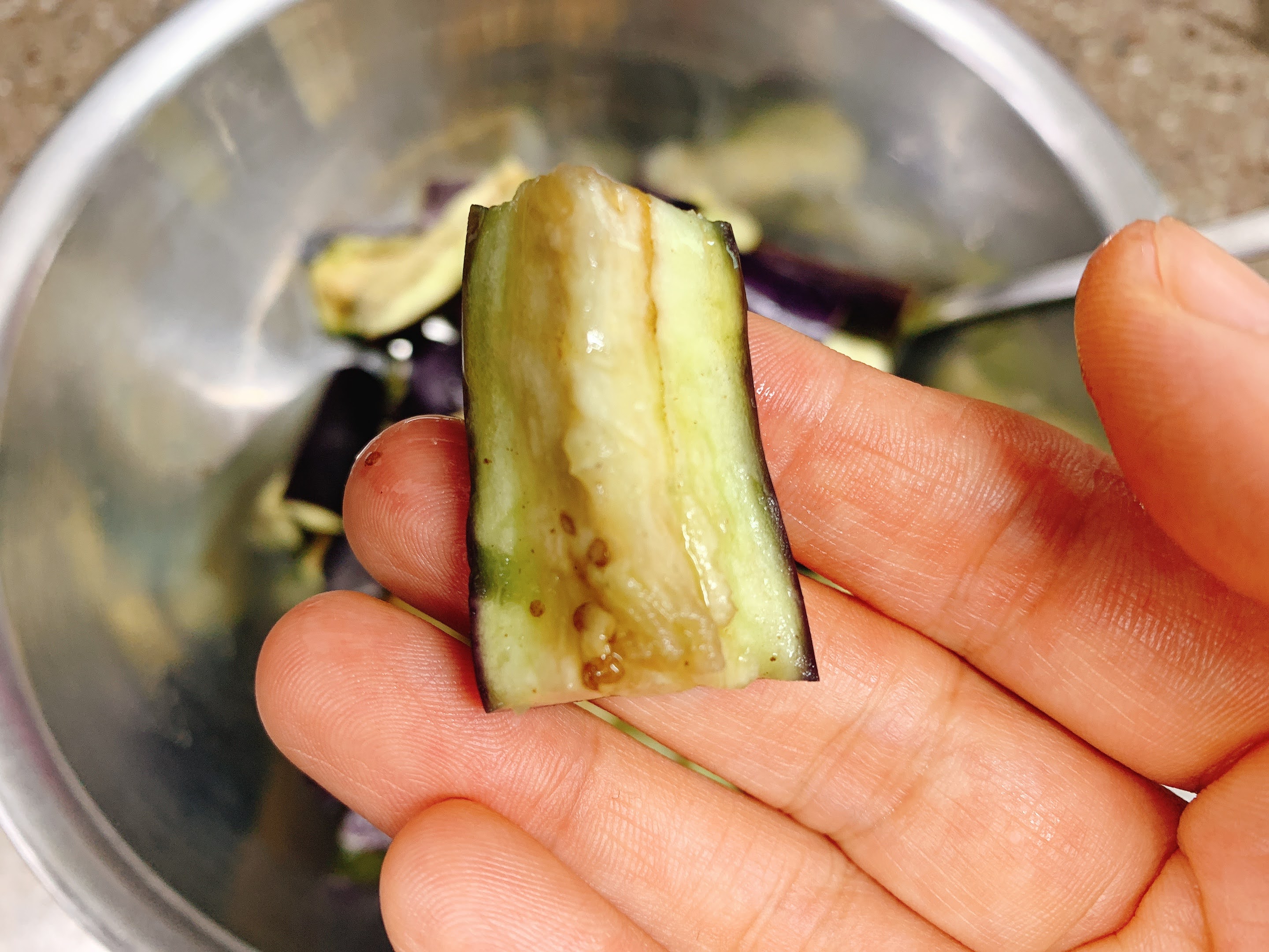 가지를 소금쳐서 쪘기에 먹어보면 짭쪼름하지만