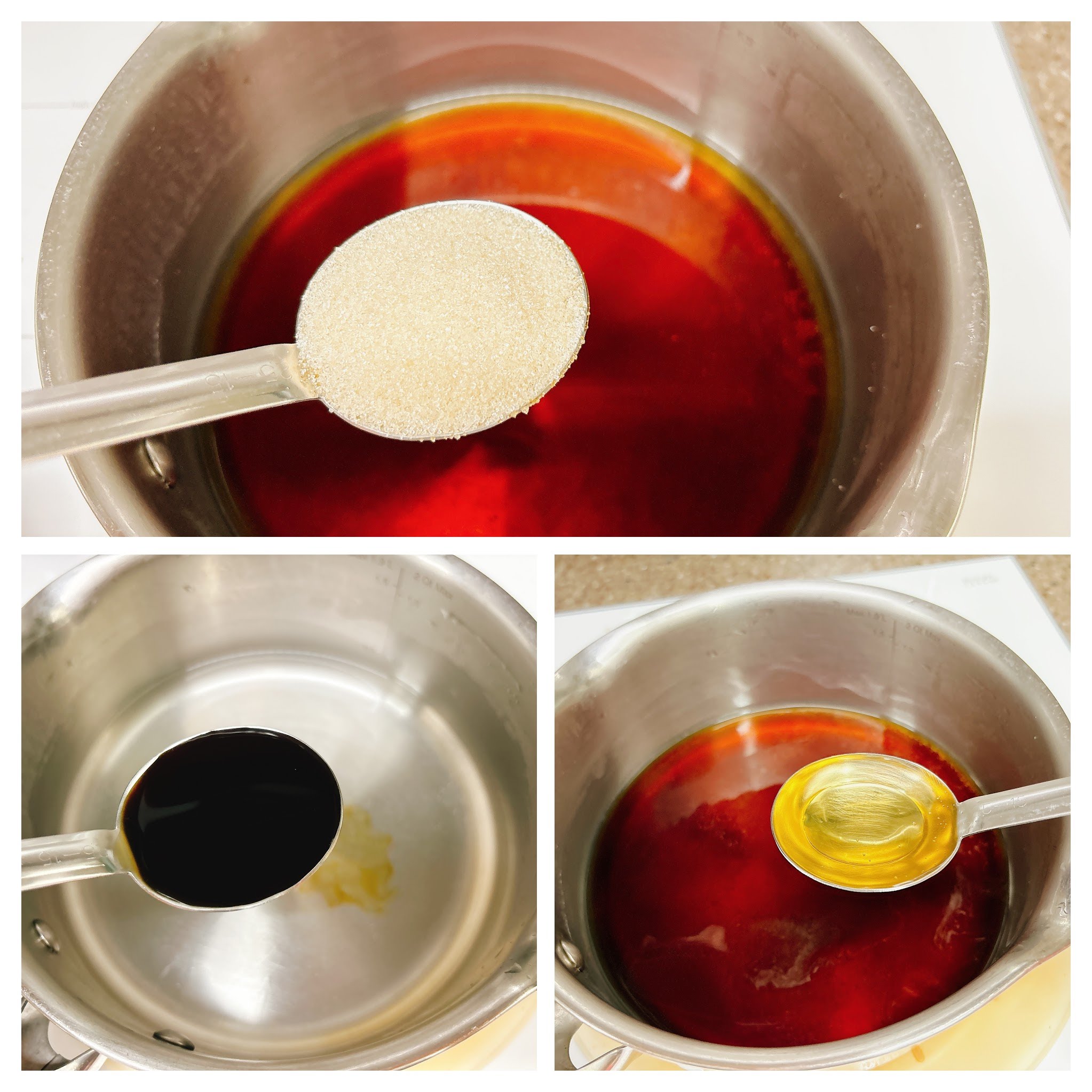 물 250ml, 간장 4스푼, 설탕 1스푼, 미림 1스푼을 풀어주면