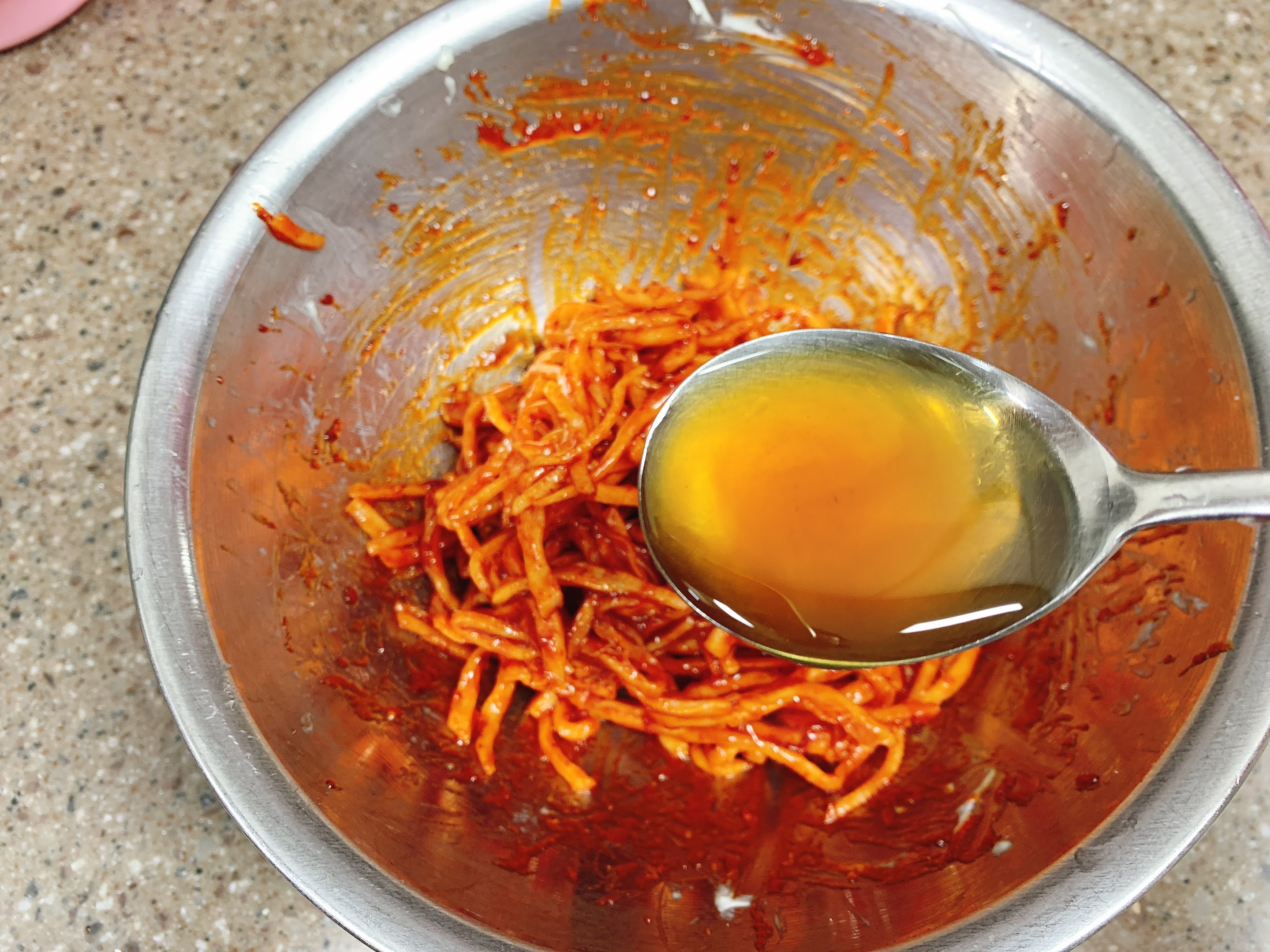 마요네즈 버무려둔 진미채에 붓고