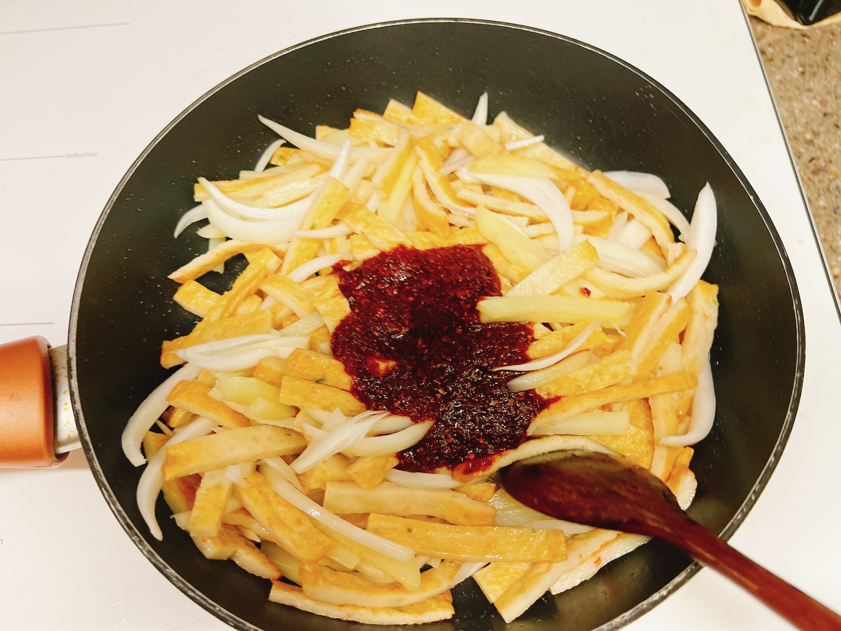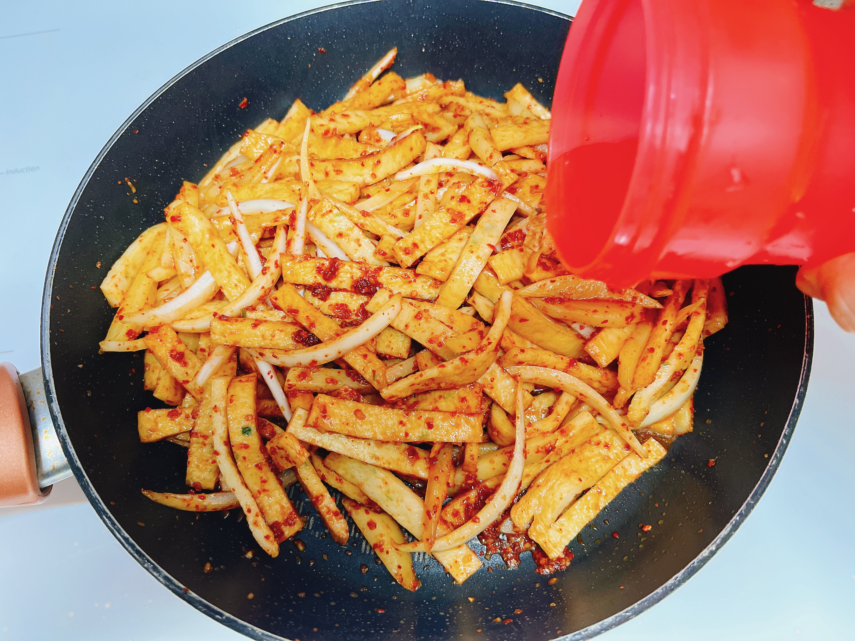 간장, 다진마늘, 설탕, 미림, 고추가루를 넣어