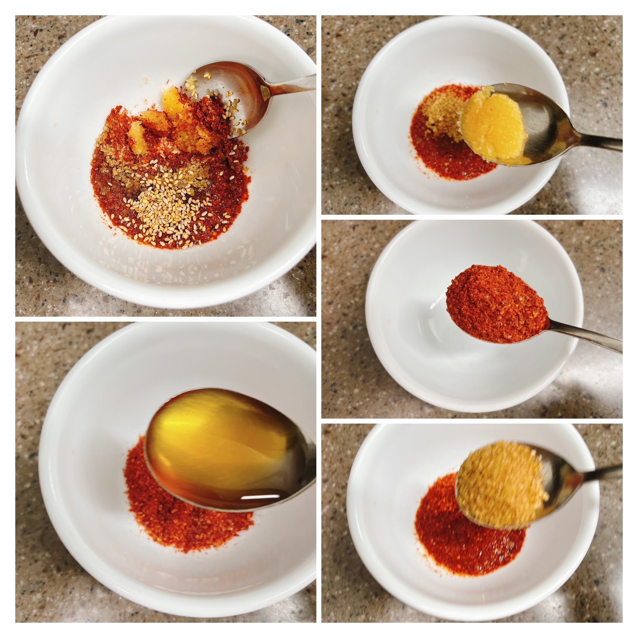 고추가루, 꽃게액젓, 설탕, 다진마늘, 통깨를