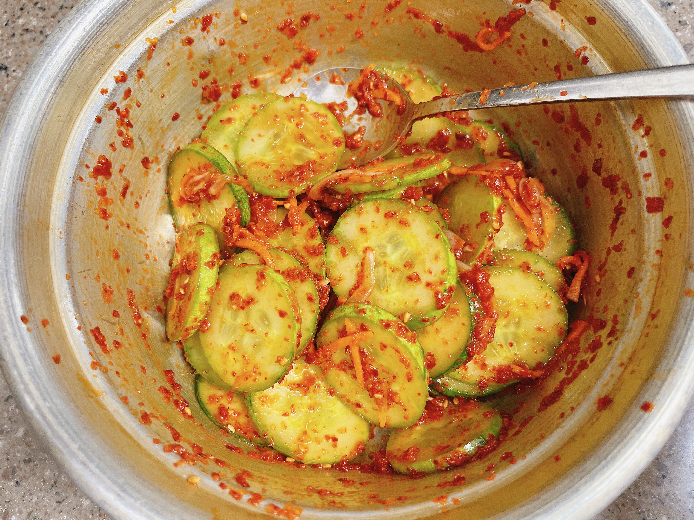 오이소박이 양념으로 겉절이식 무침을 만들었네요