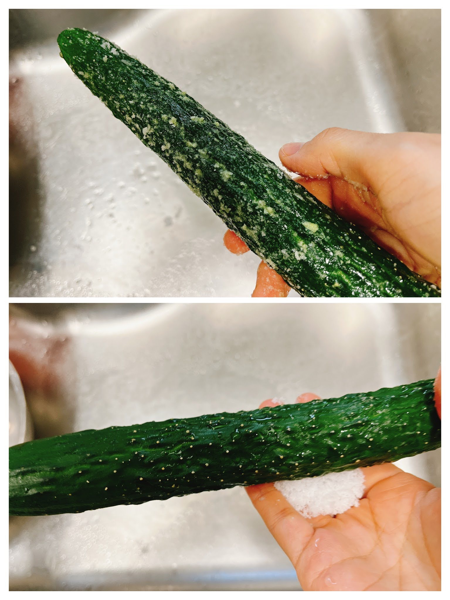 소금으로 문질러 씻어 줬어요