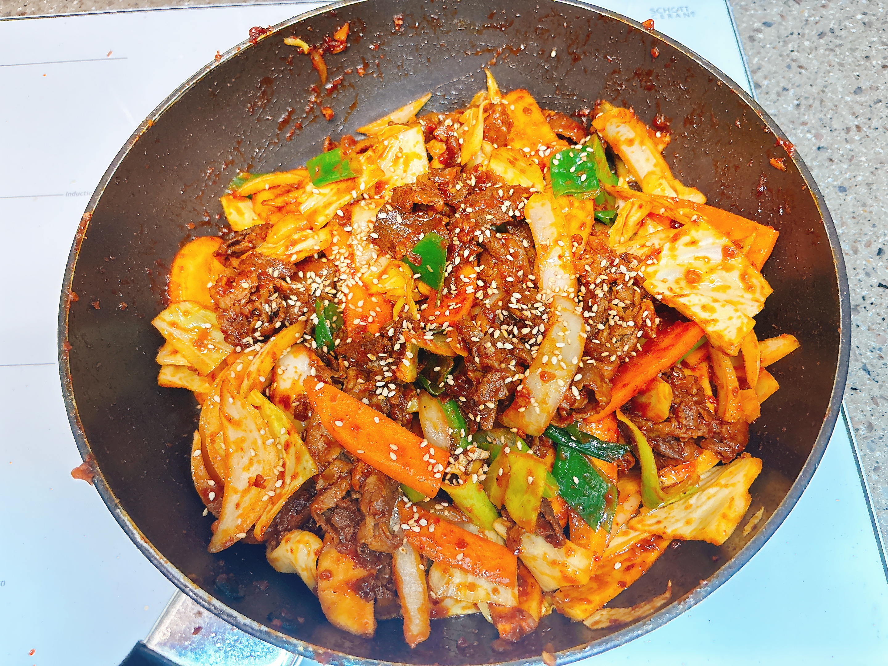 뻑뻑함을 보완하기위해 야채 넣고 양념을 더해