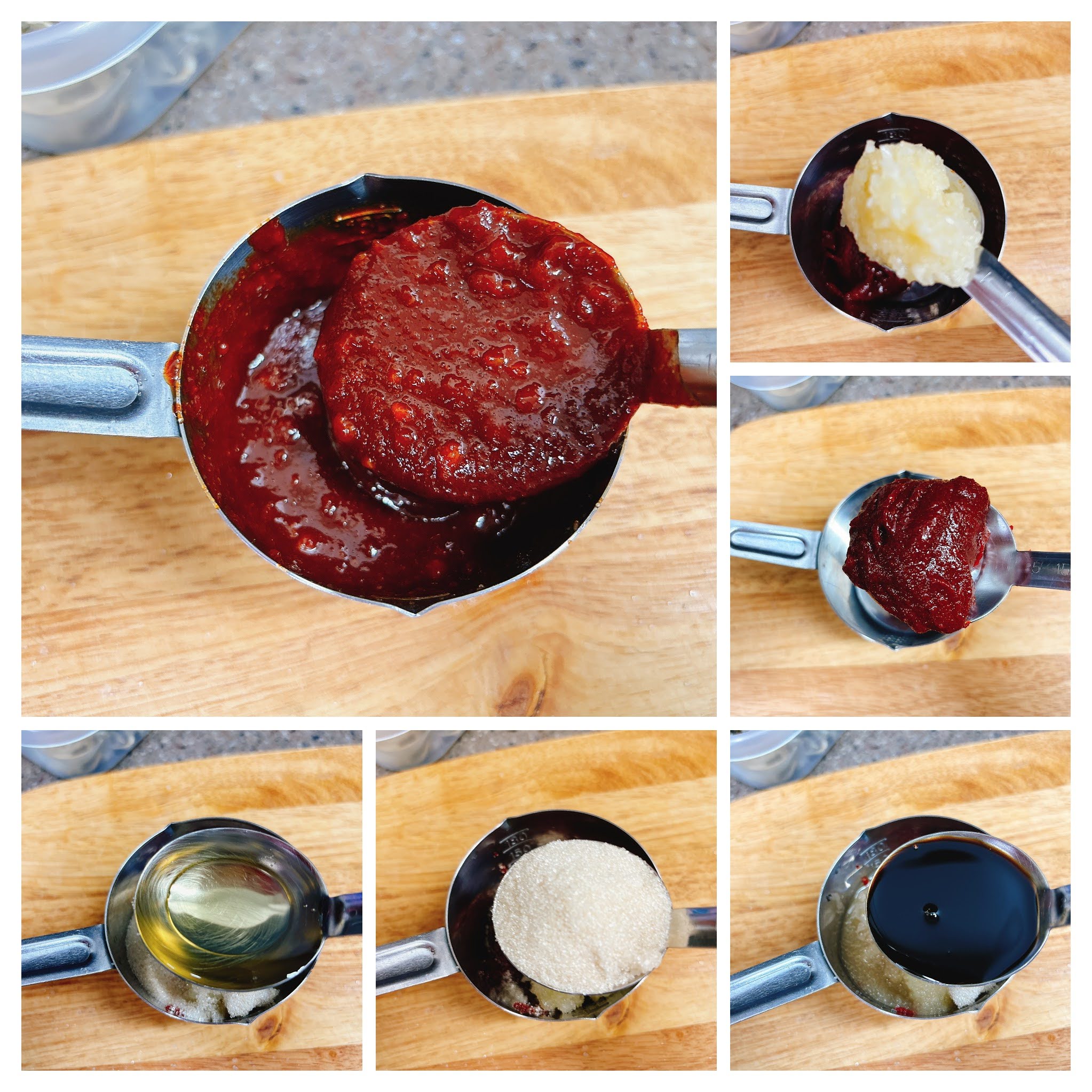 고추장 2T + 간장 1.5T + 설탕 수북한 1T