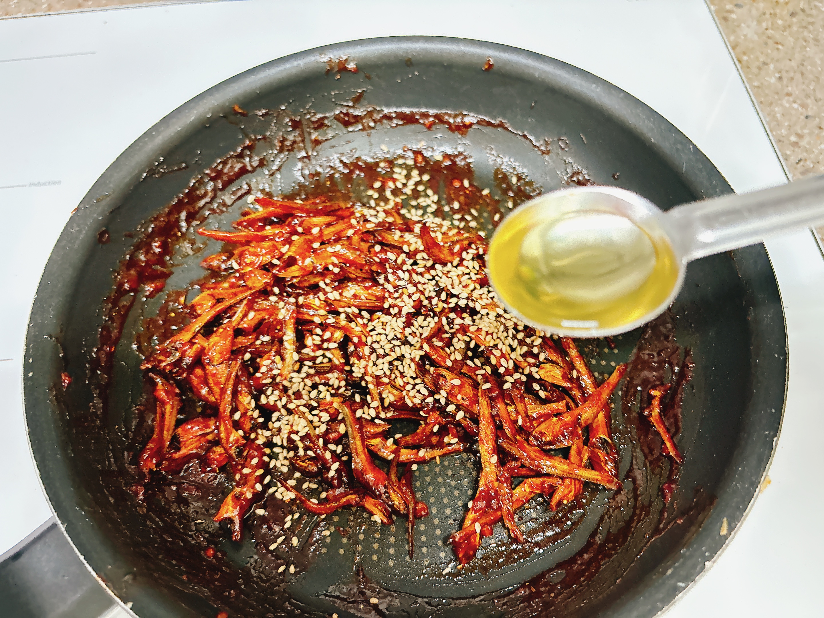 그냥 덖는것보다 기름을 더해 볶듯이 덖으면