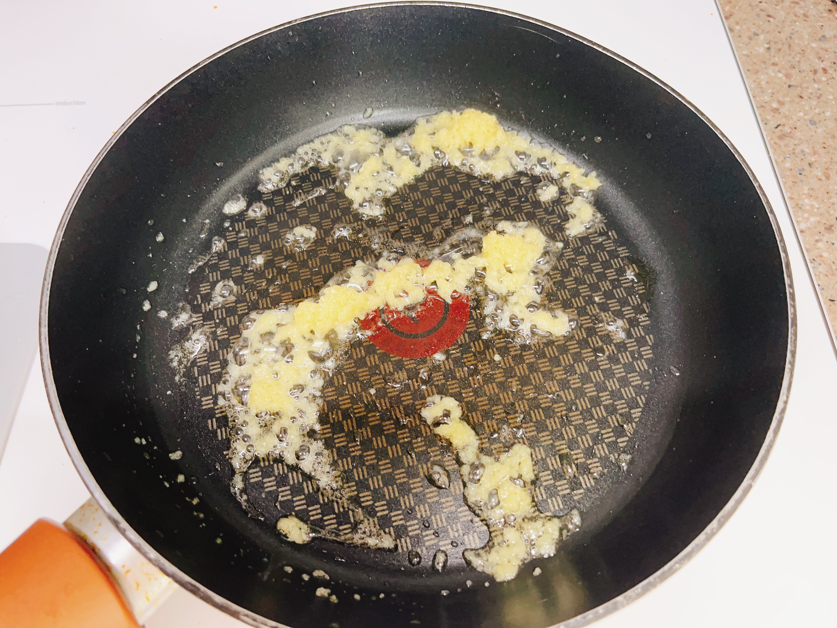 마늘향이 퍼지도록 중약불에 볶아요
