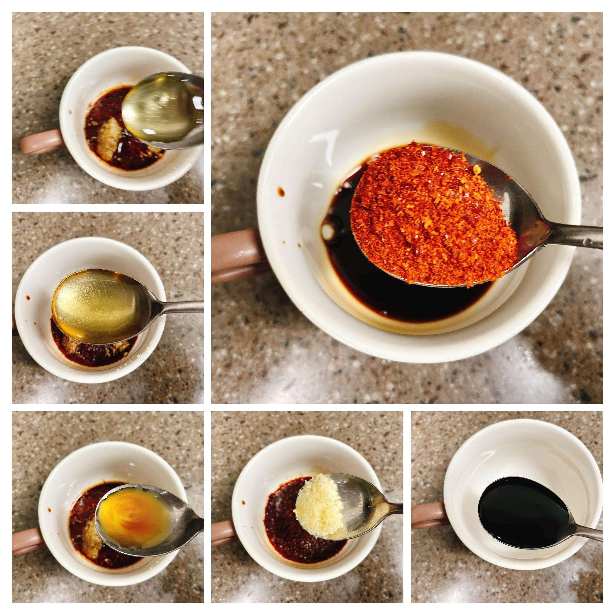 간장, 식초, 올리고당, 다진마늘, 고추가루, 참기름을
