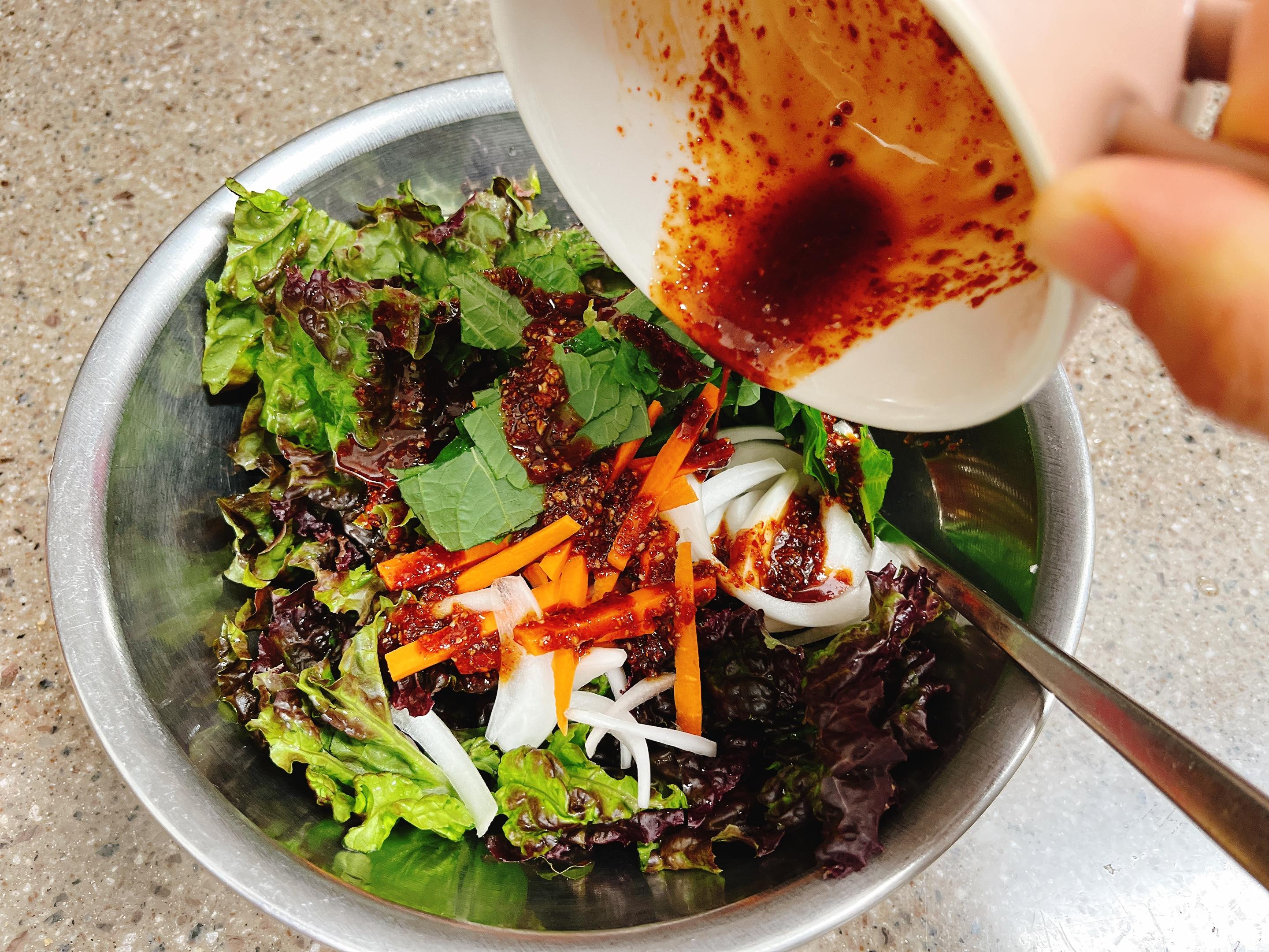 3. 상추와 양념을 버무려요