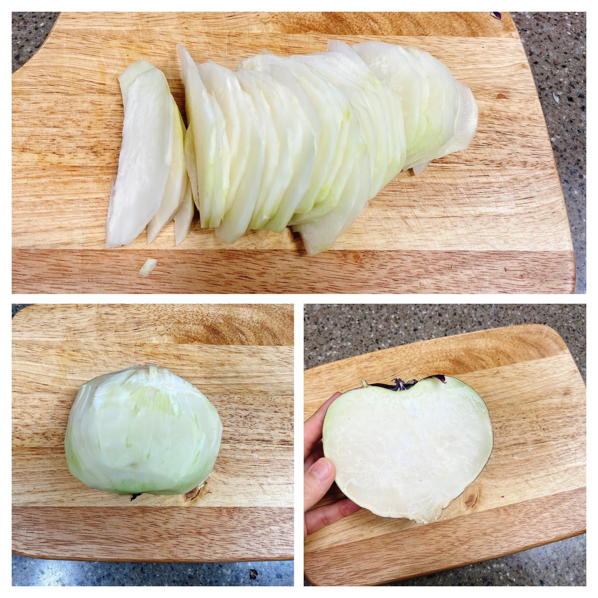 콜라비에 색이 베이고 숨이 살짝 죽었네요