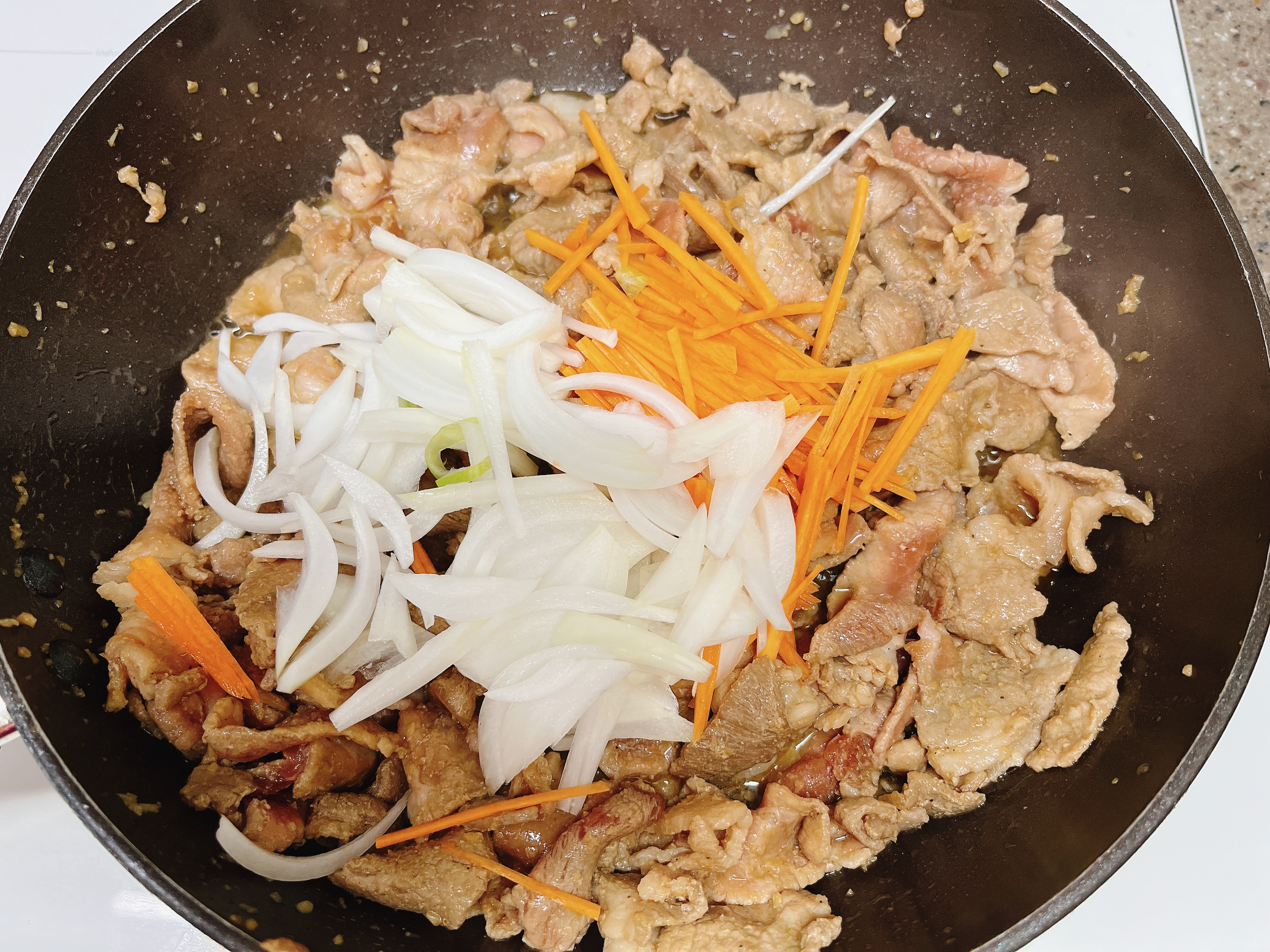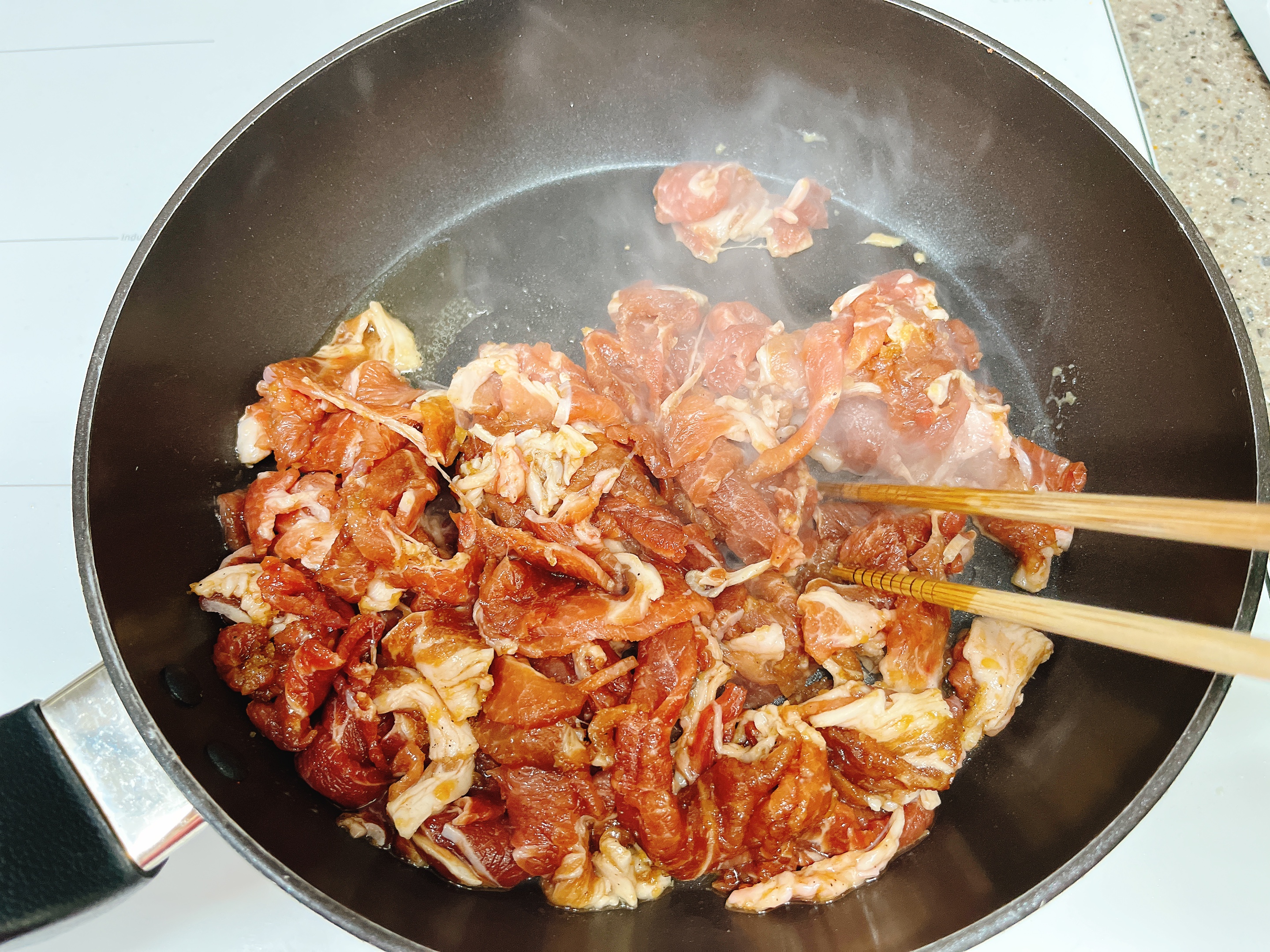 양념해둔 돼지고기를 볶아요