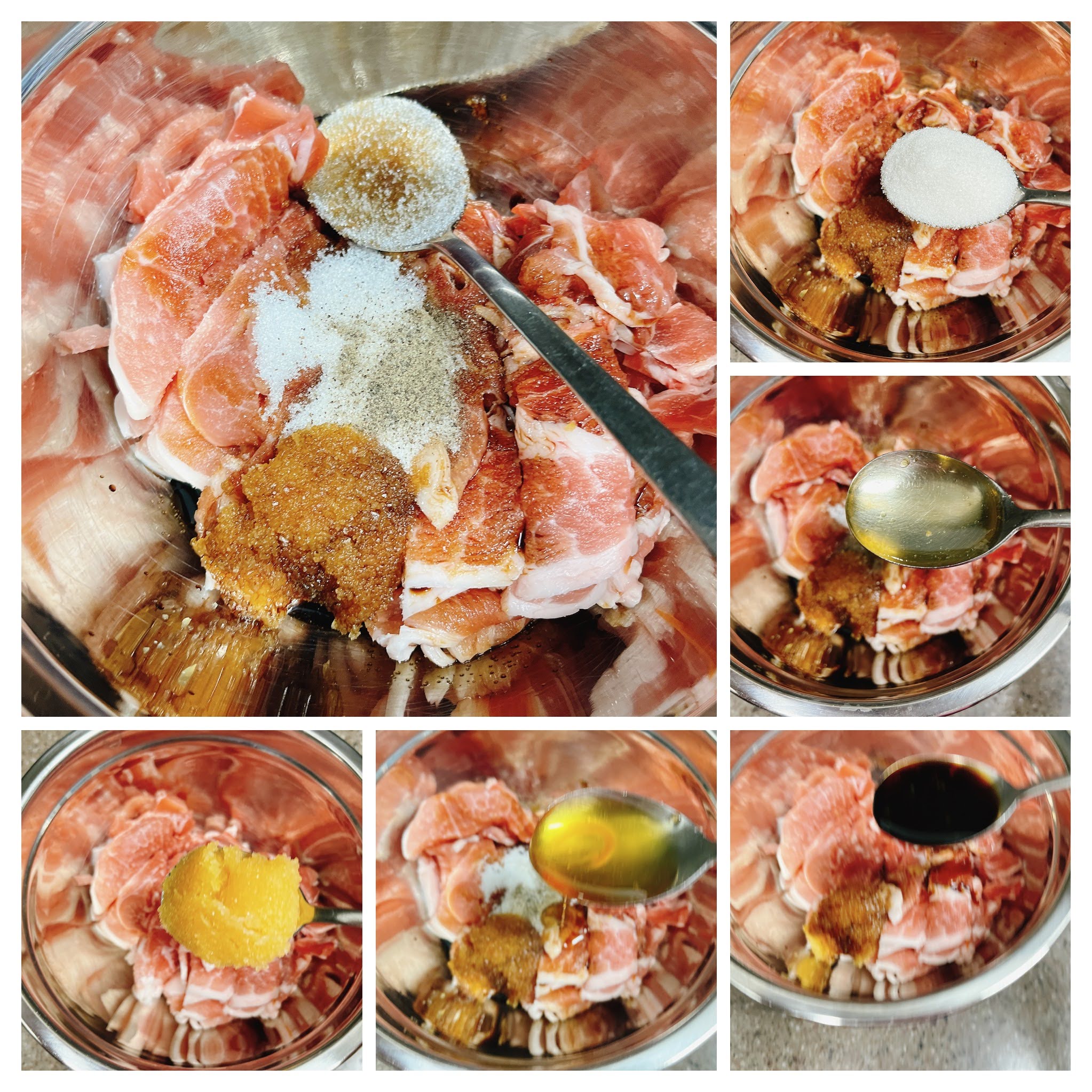 돼지 앞다리살을 먼저 양념해요