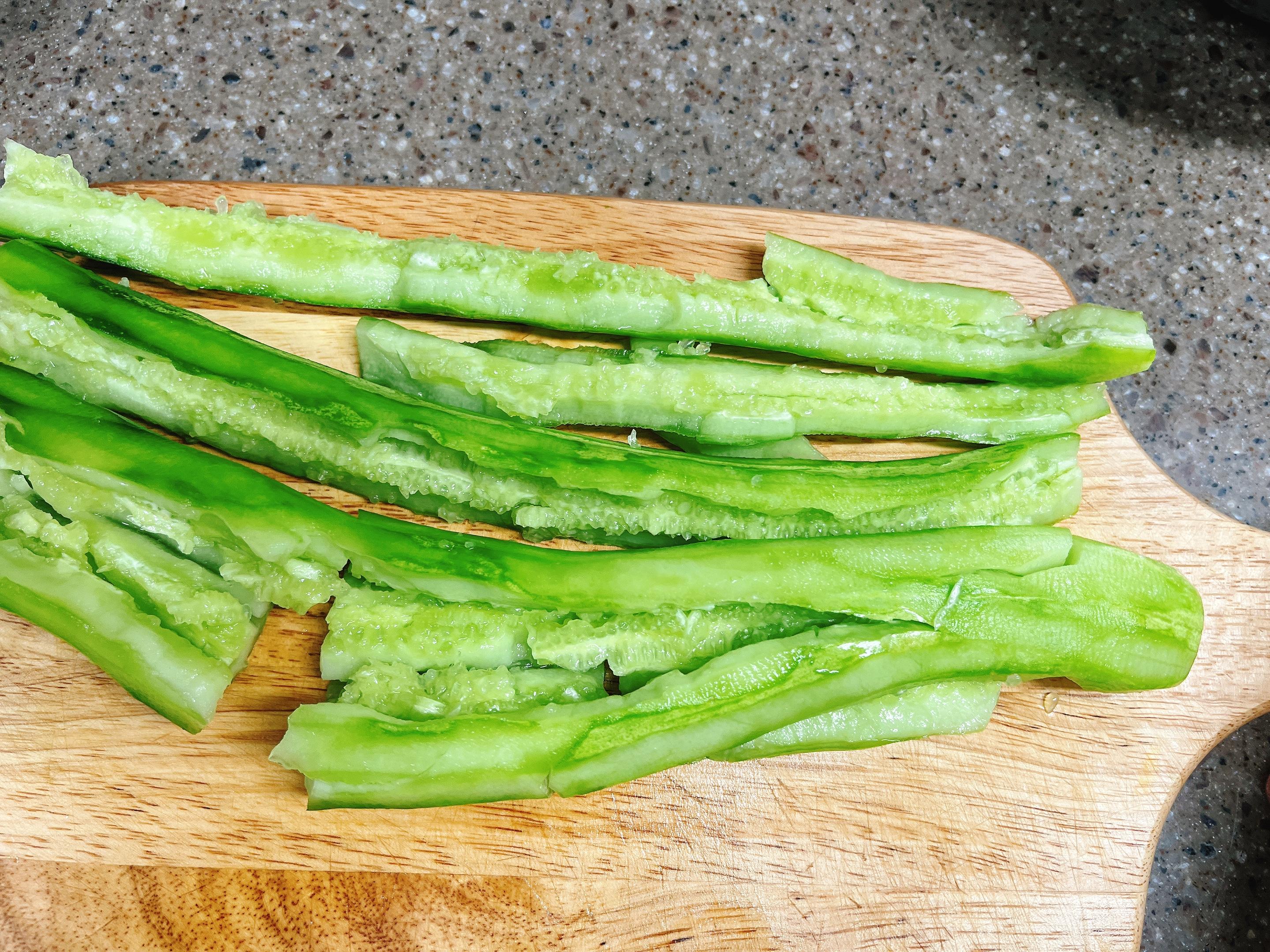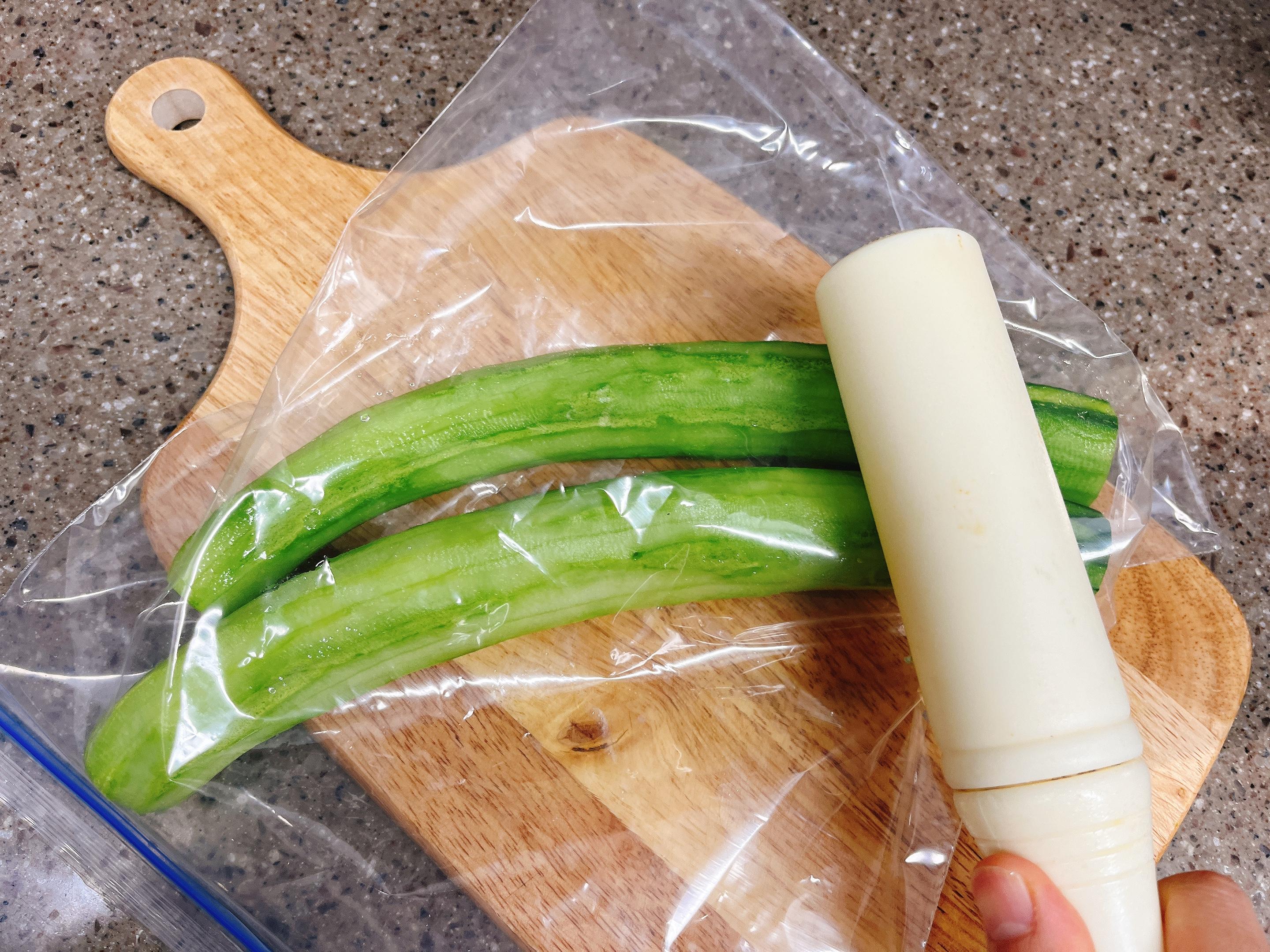 1. 오이는 껍질을 벗기고, 탕탕~ 두르려요