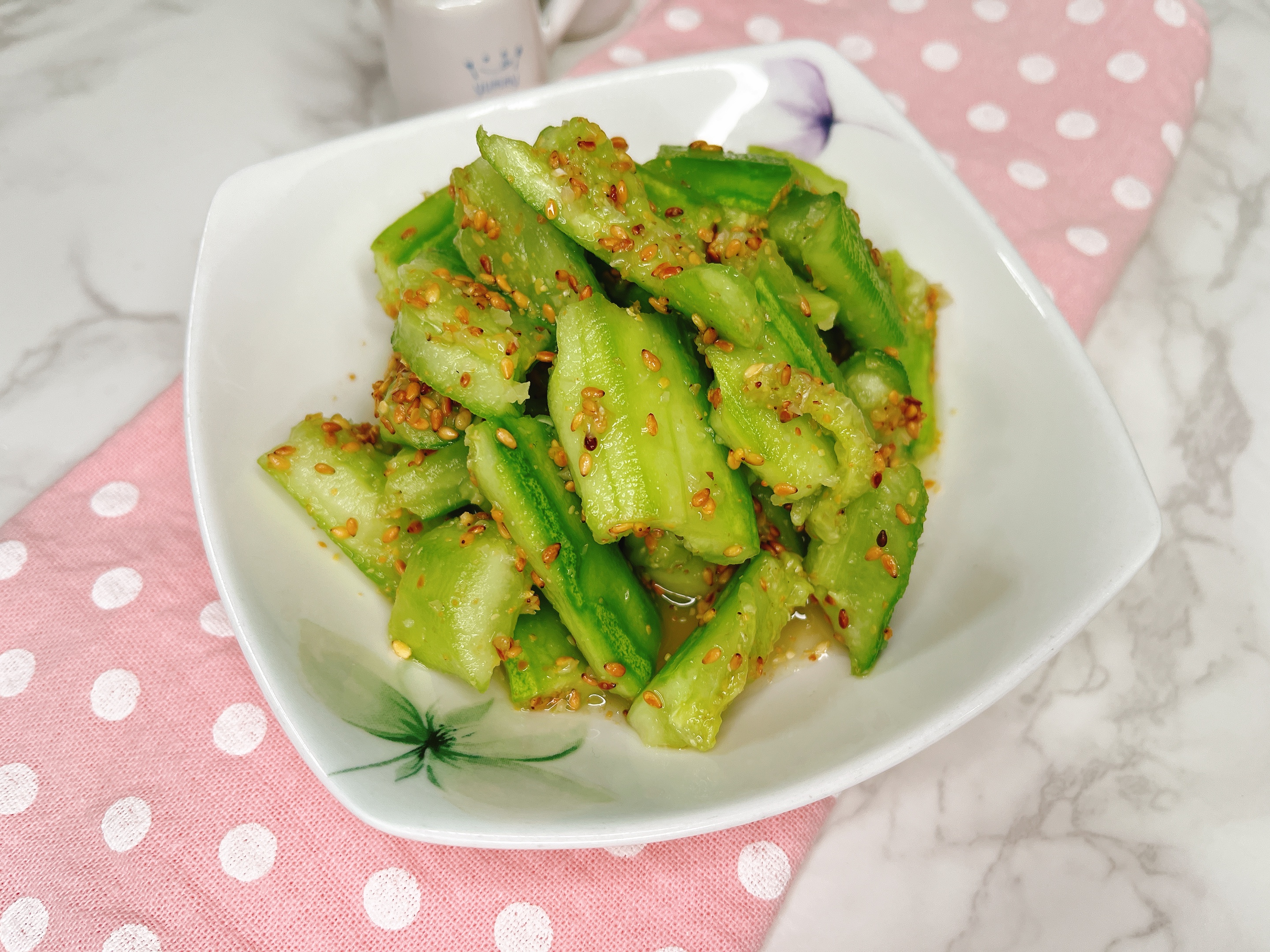 새콤달콤고소한 양념에 버무린 오이반찬으로