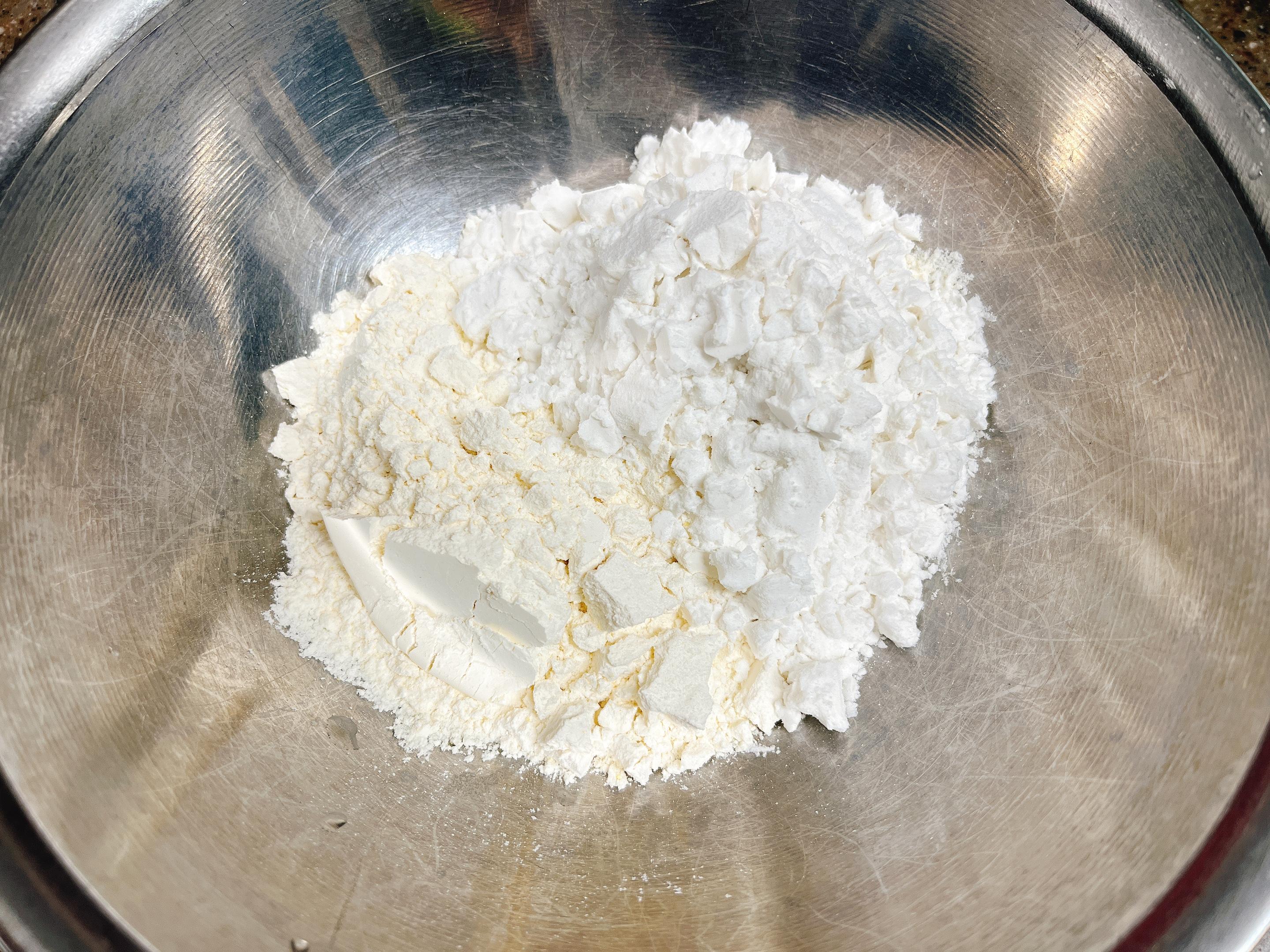 부침가루 2/3컵+전분 2/3컵에 물 1컵 반정도로