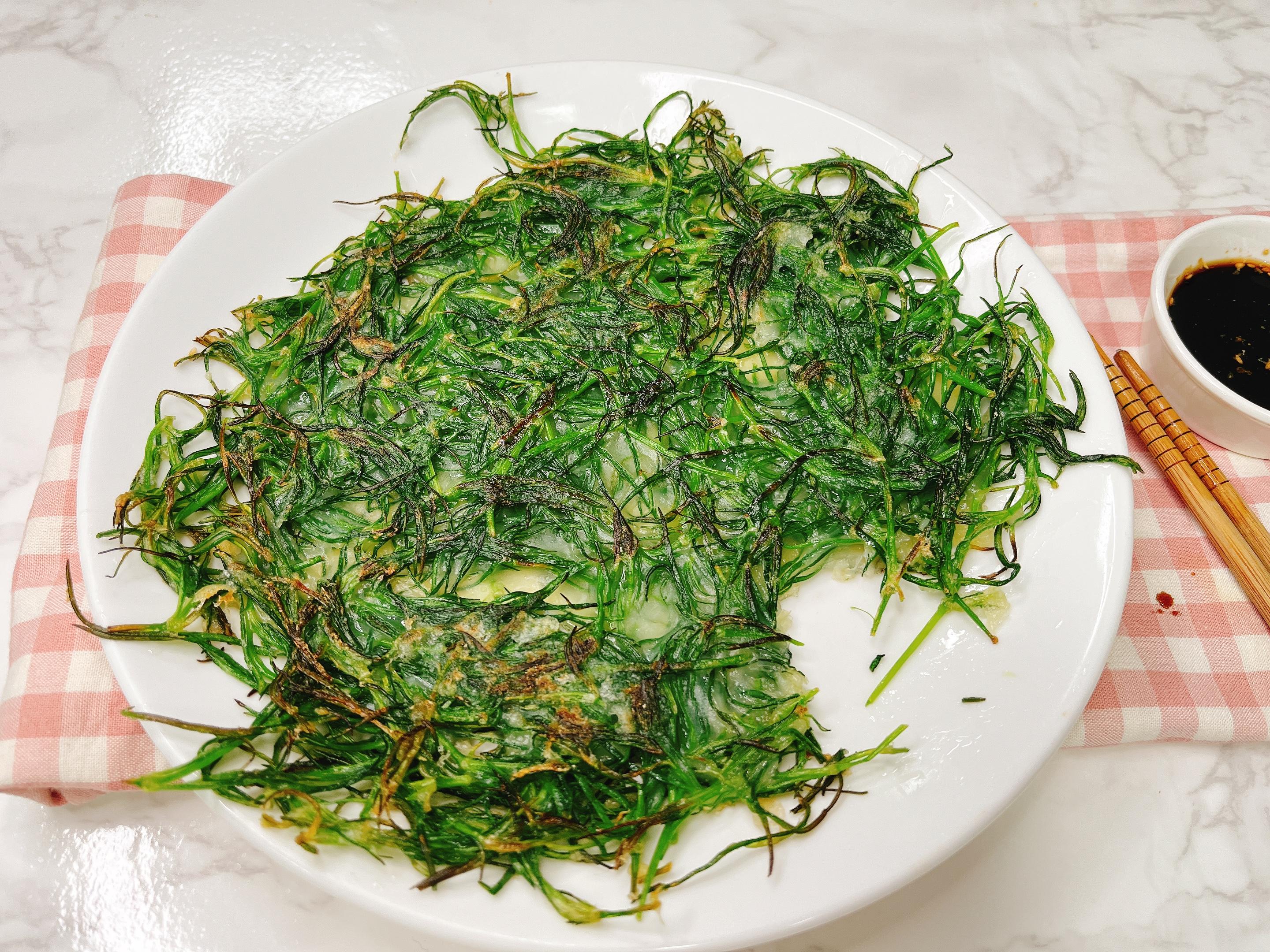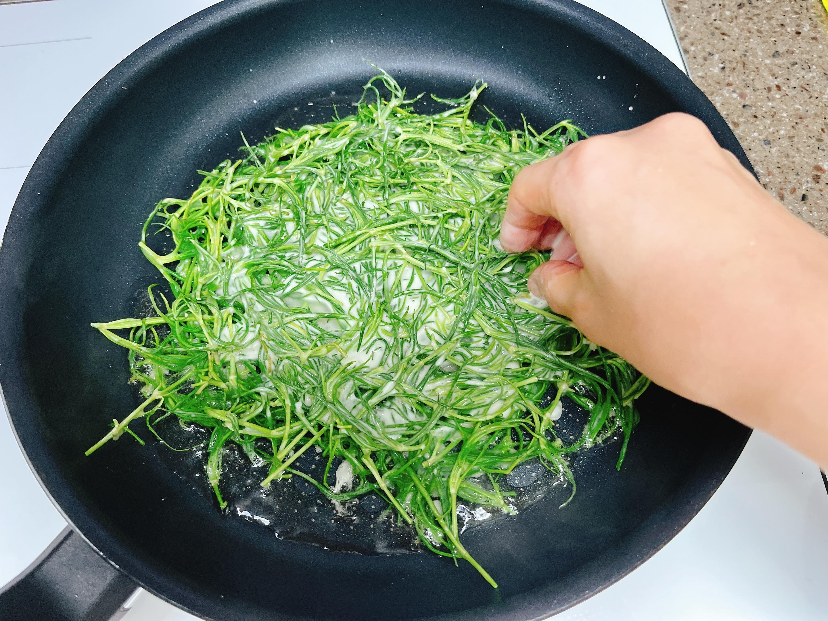 반죽물 발린 세발나물을 손으로 넓게 펴줘요