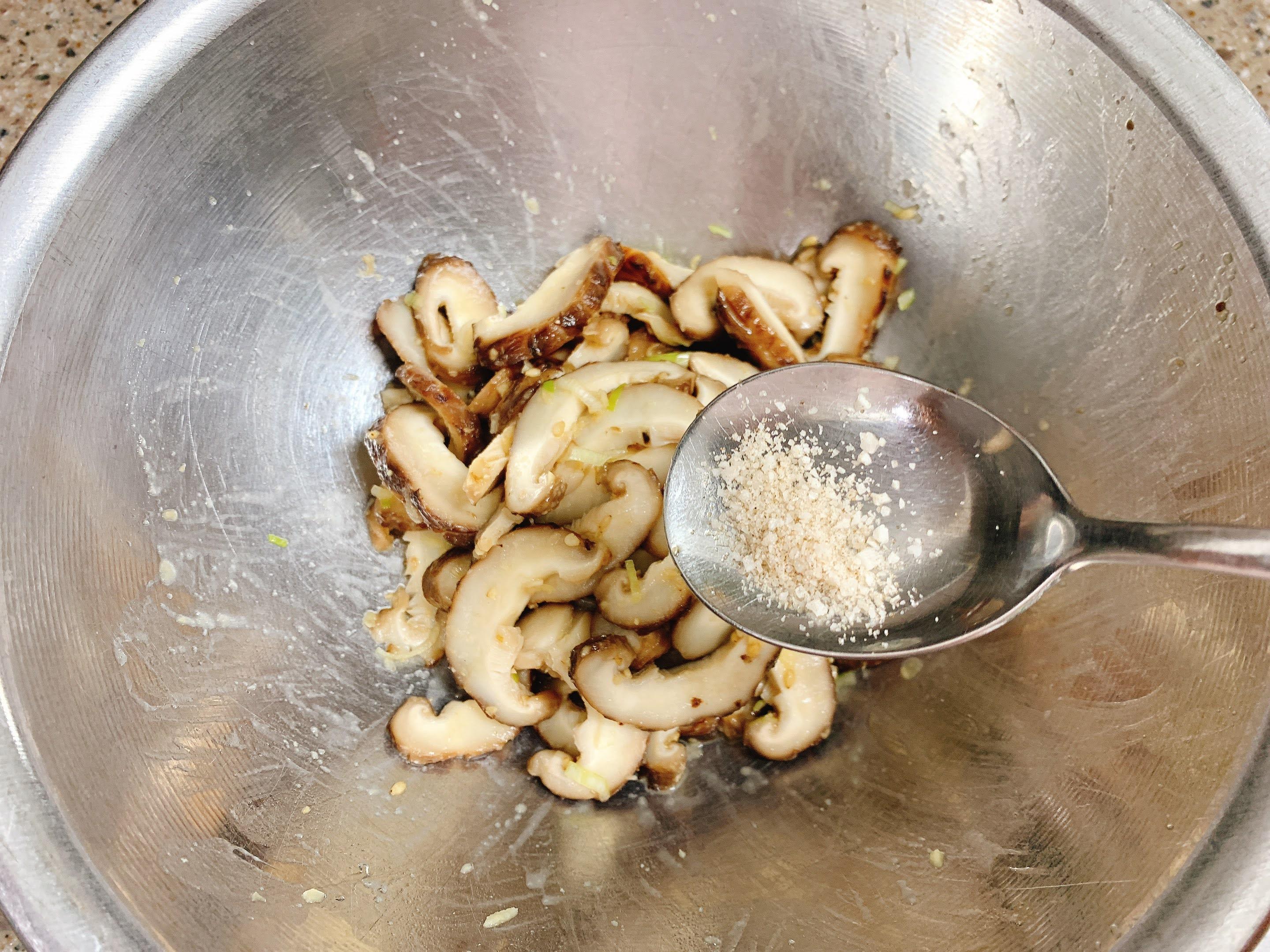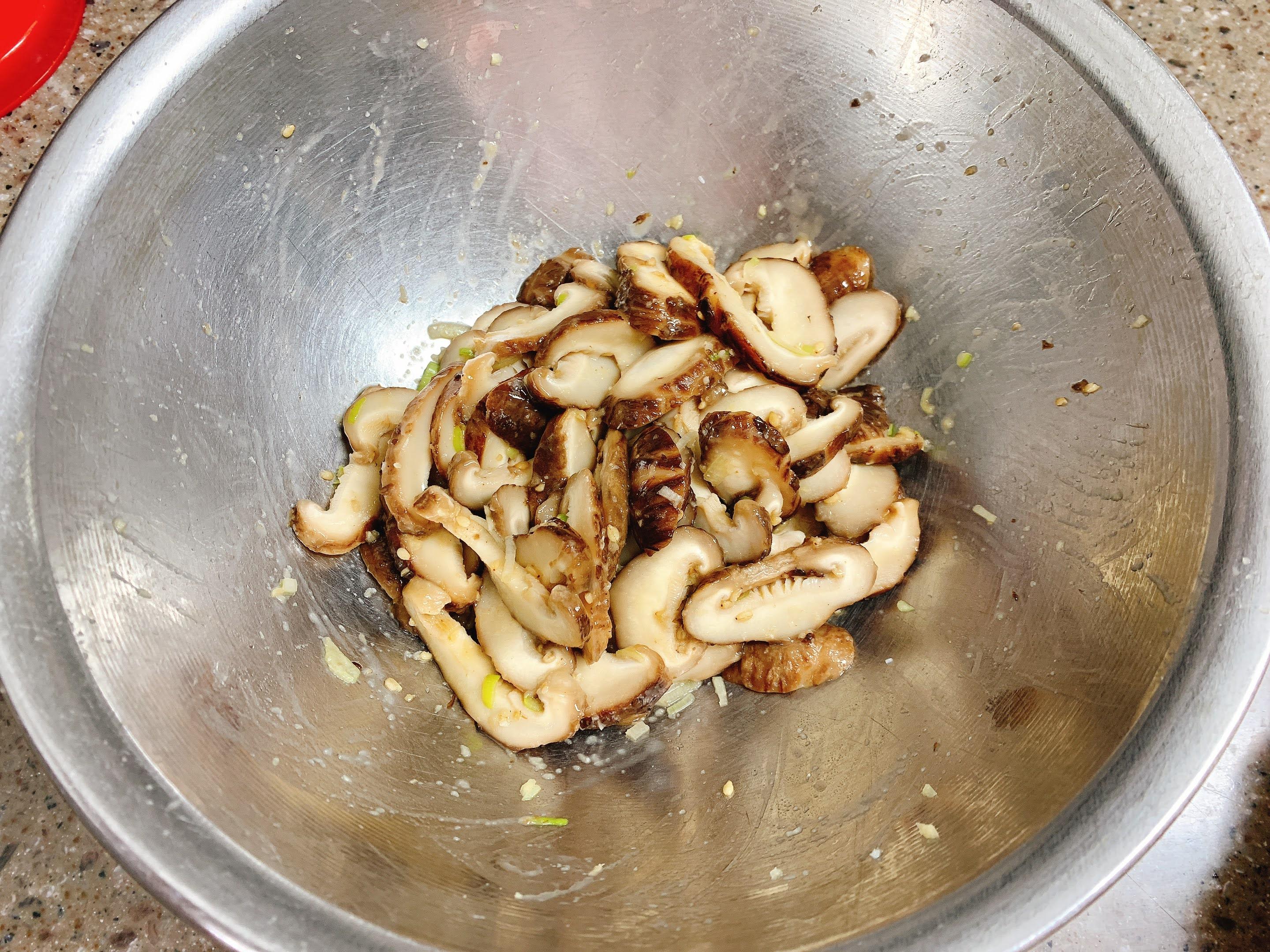 표고버섯을 살짝 데쳐 조물 무쳐 나물무침을 만들었어요