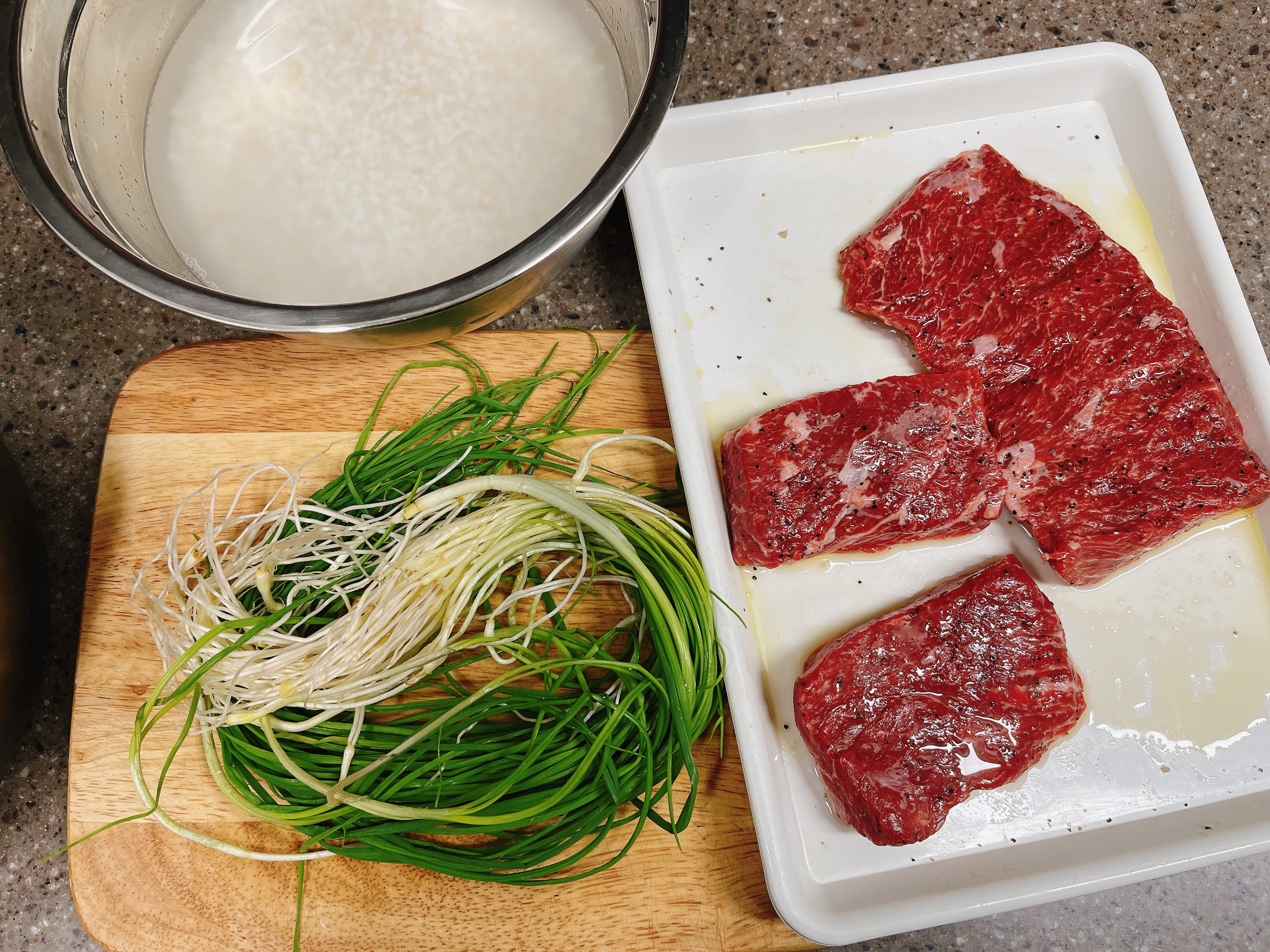 불린 쌀에 풍미를 위해 버터 넣어 압력밥솥으로 밥하고