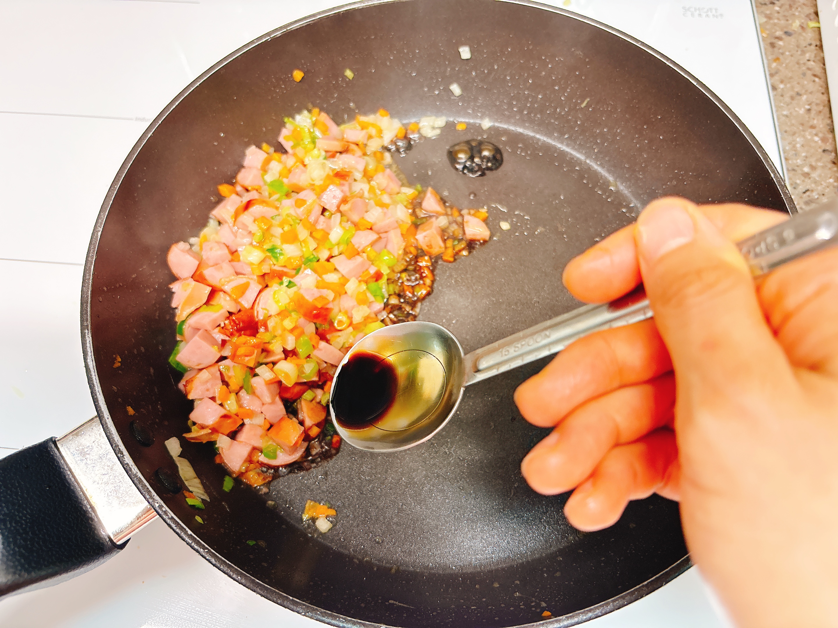 햄의 양이나 짠 정도에 따라 간을 조절하세요