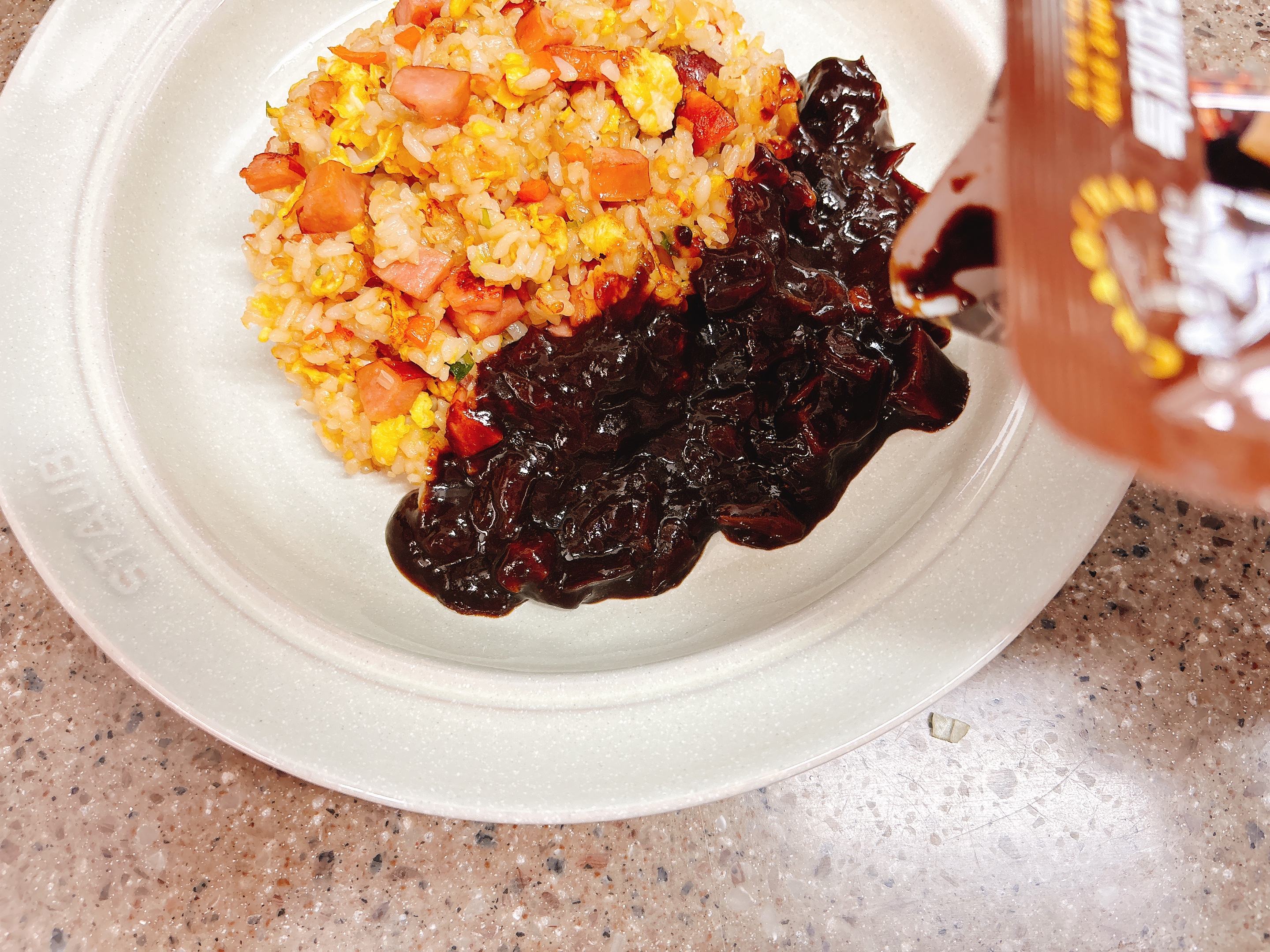 데운 시판짜장소스를 둘러줬어요