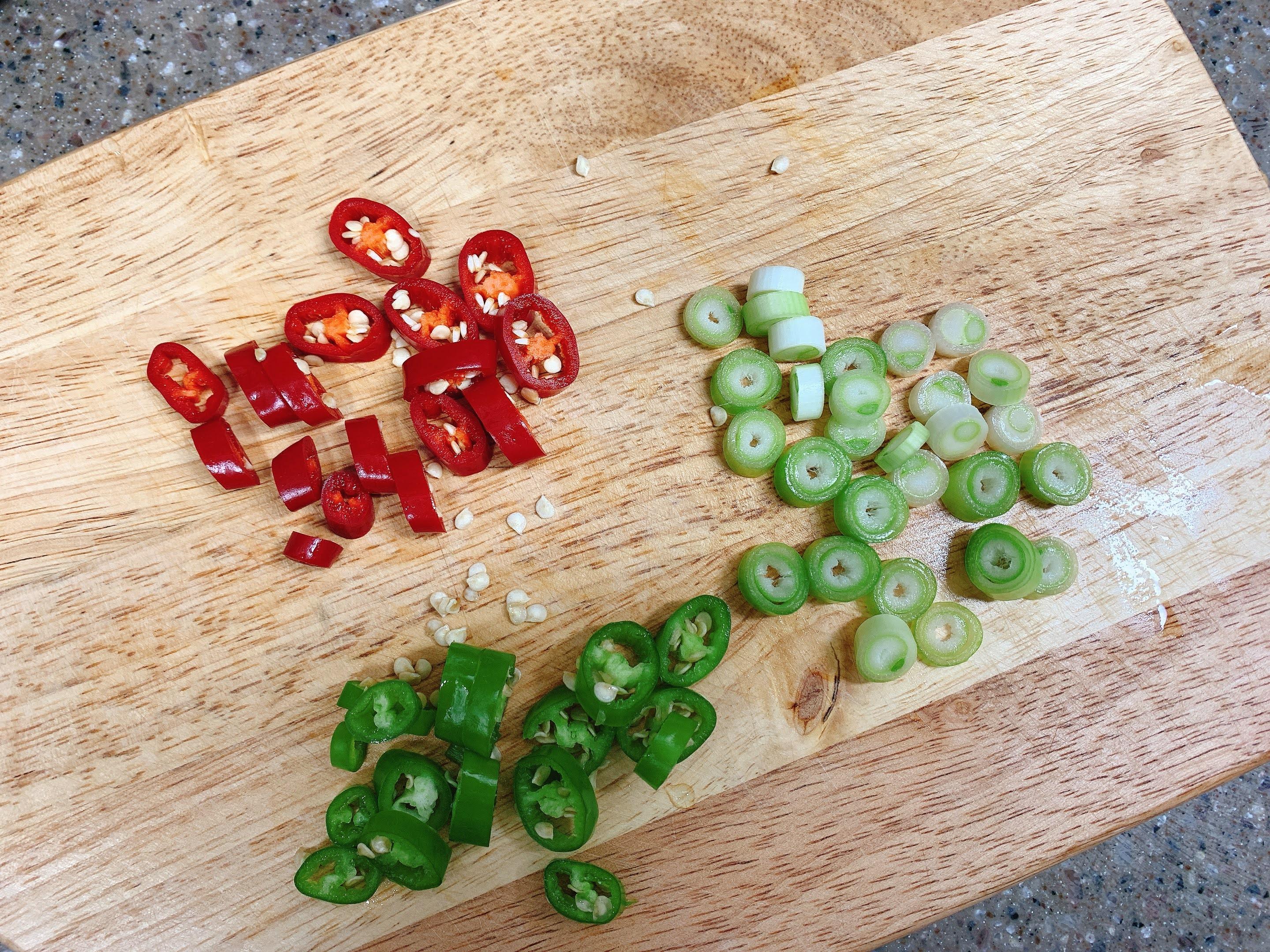 청양고추, 홍고추 1개씩 그리고 대파 흰부분을 준비했어요