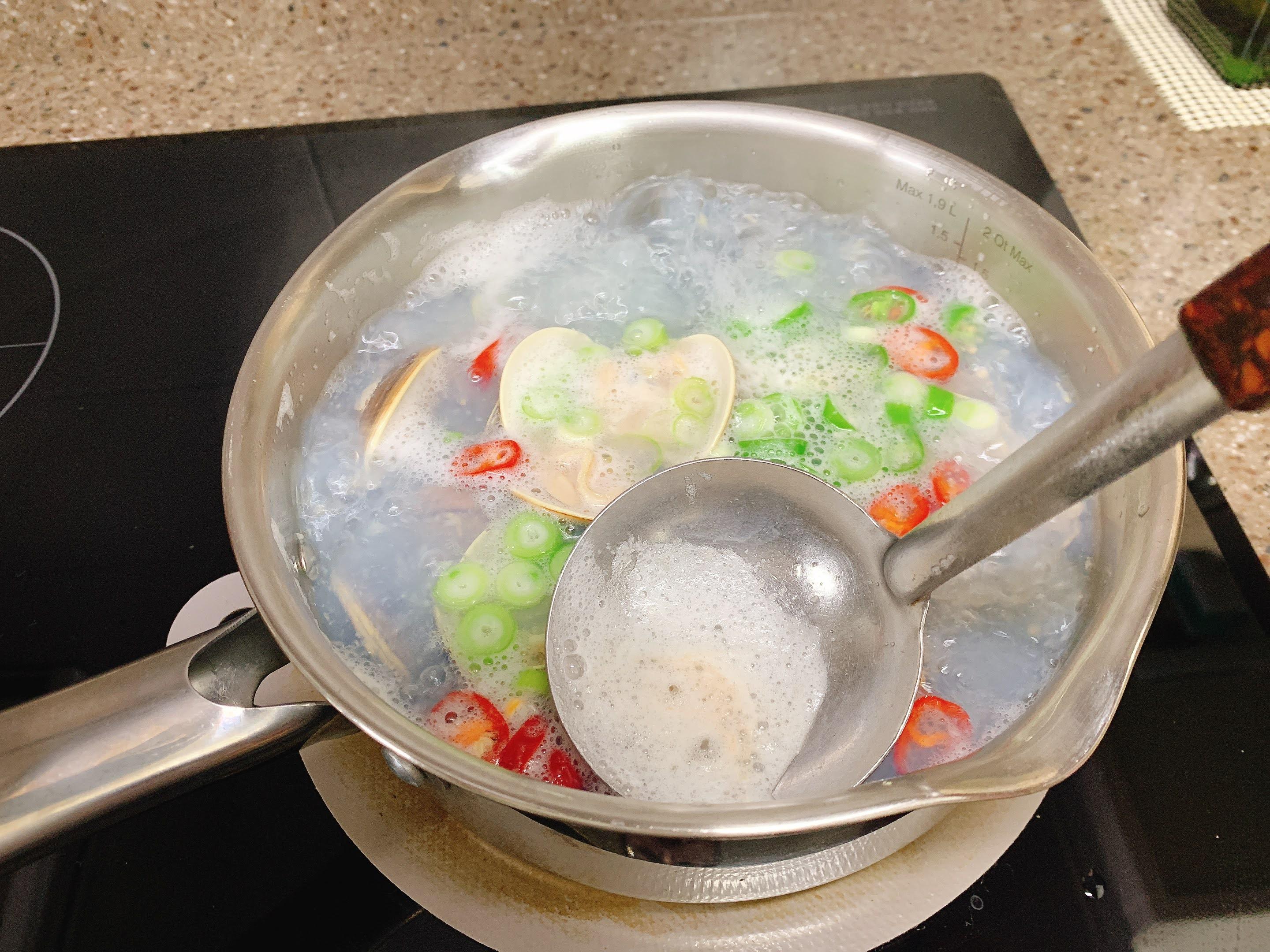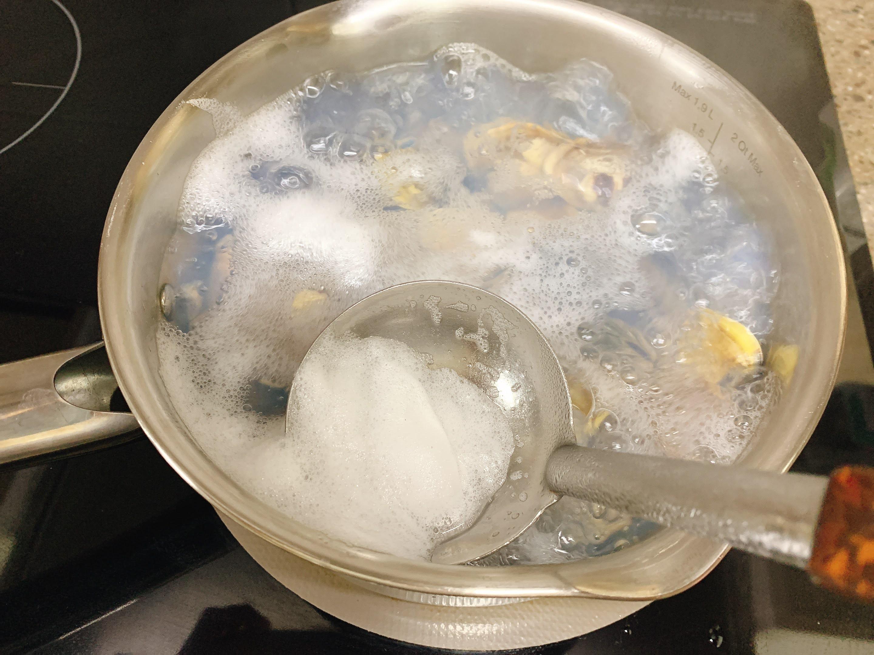 생기는 거품은 국자를 사용해 적당히 걷어내요