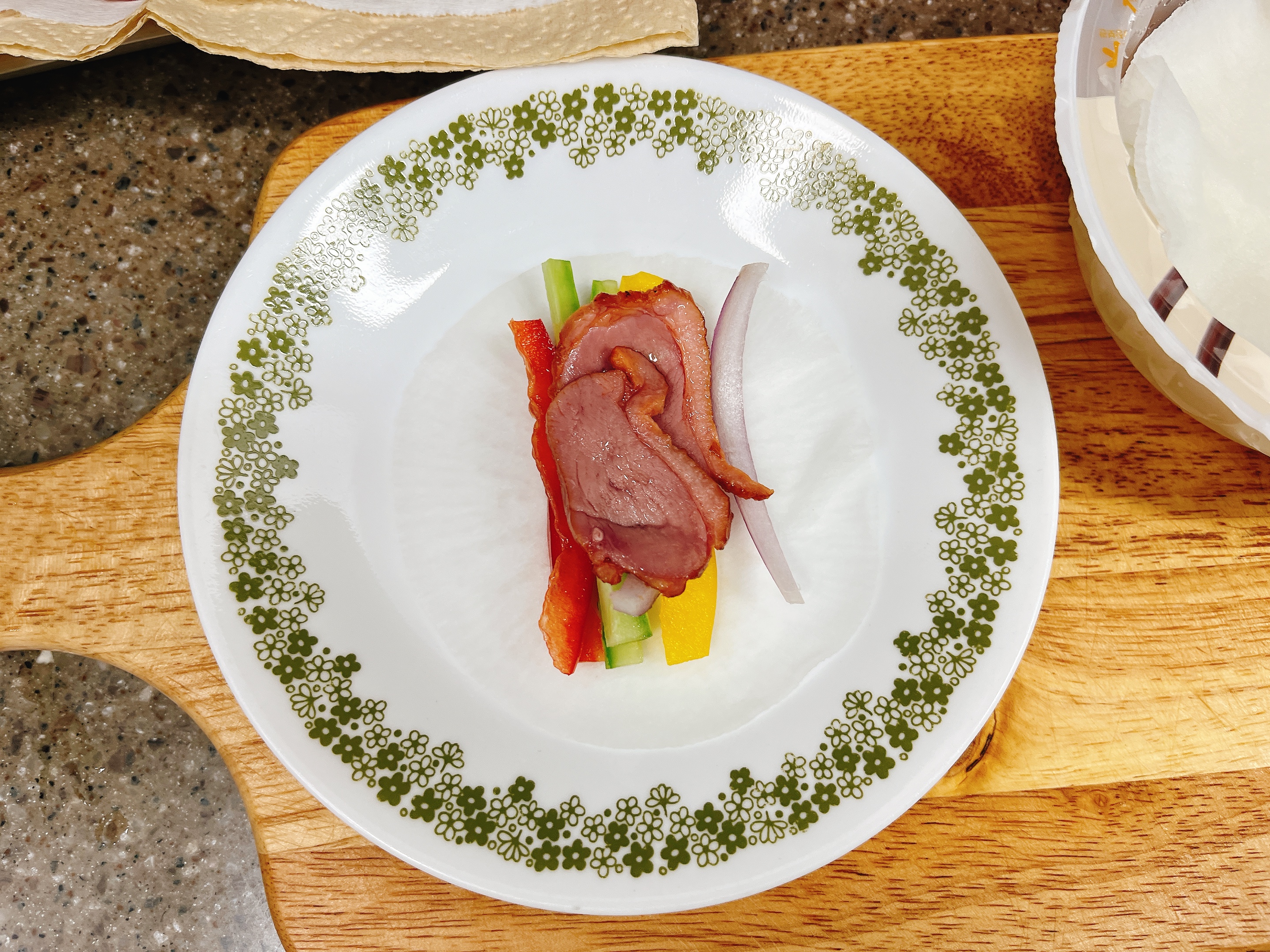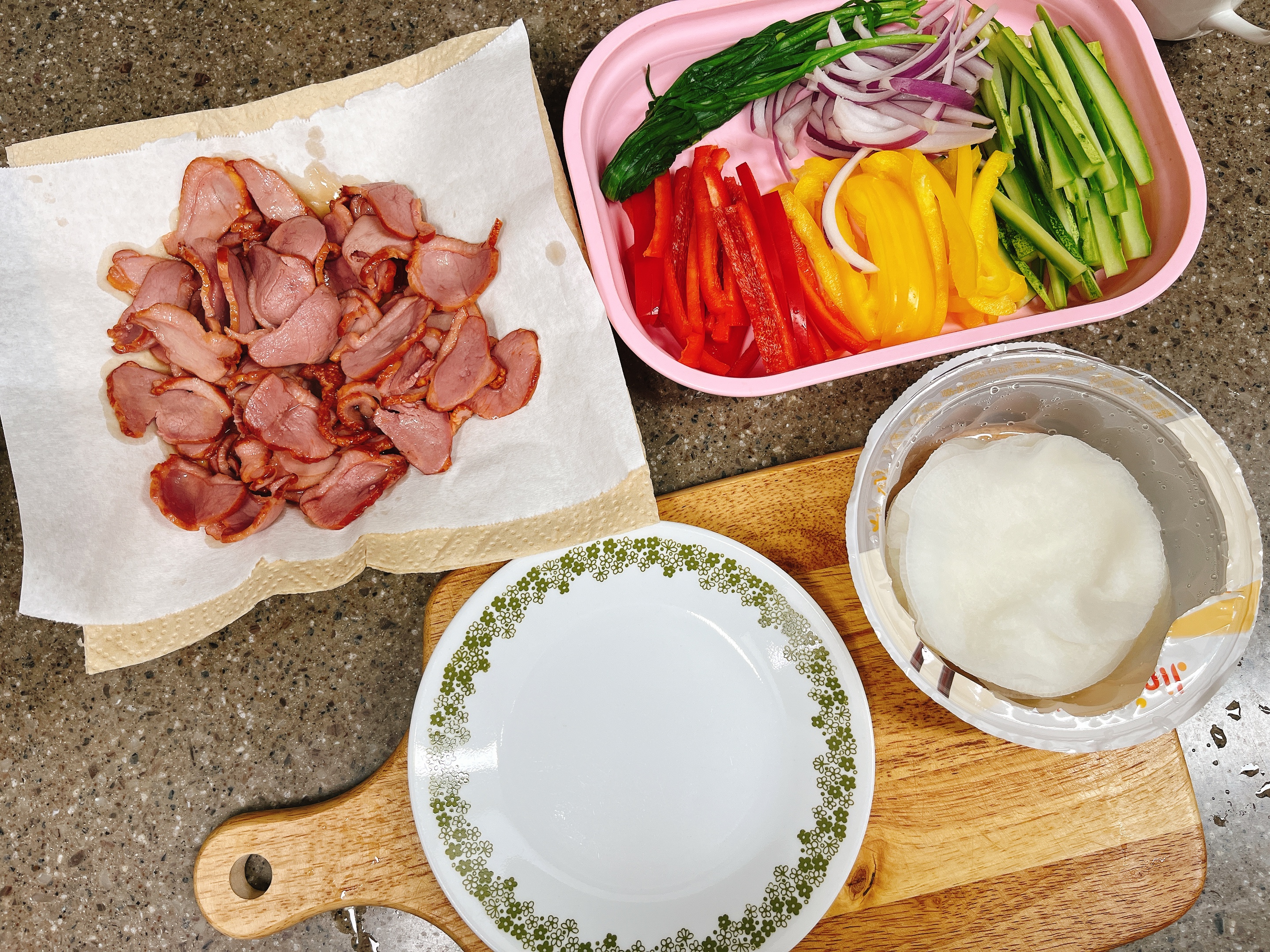 야채, 훈제오리는 준비끝
