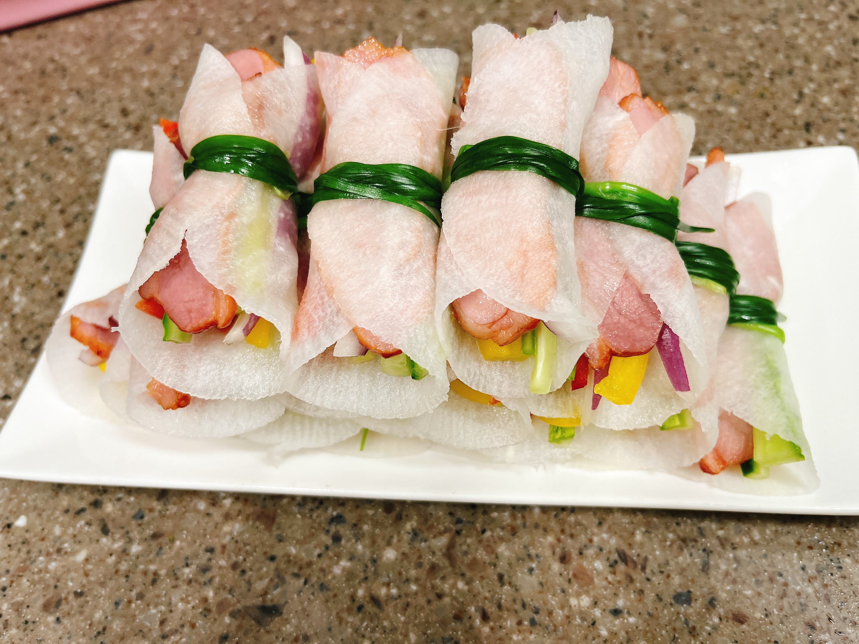 훈제오리를 넣은 무쌈말이~~