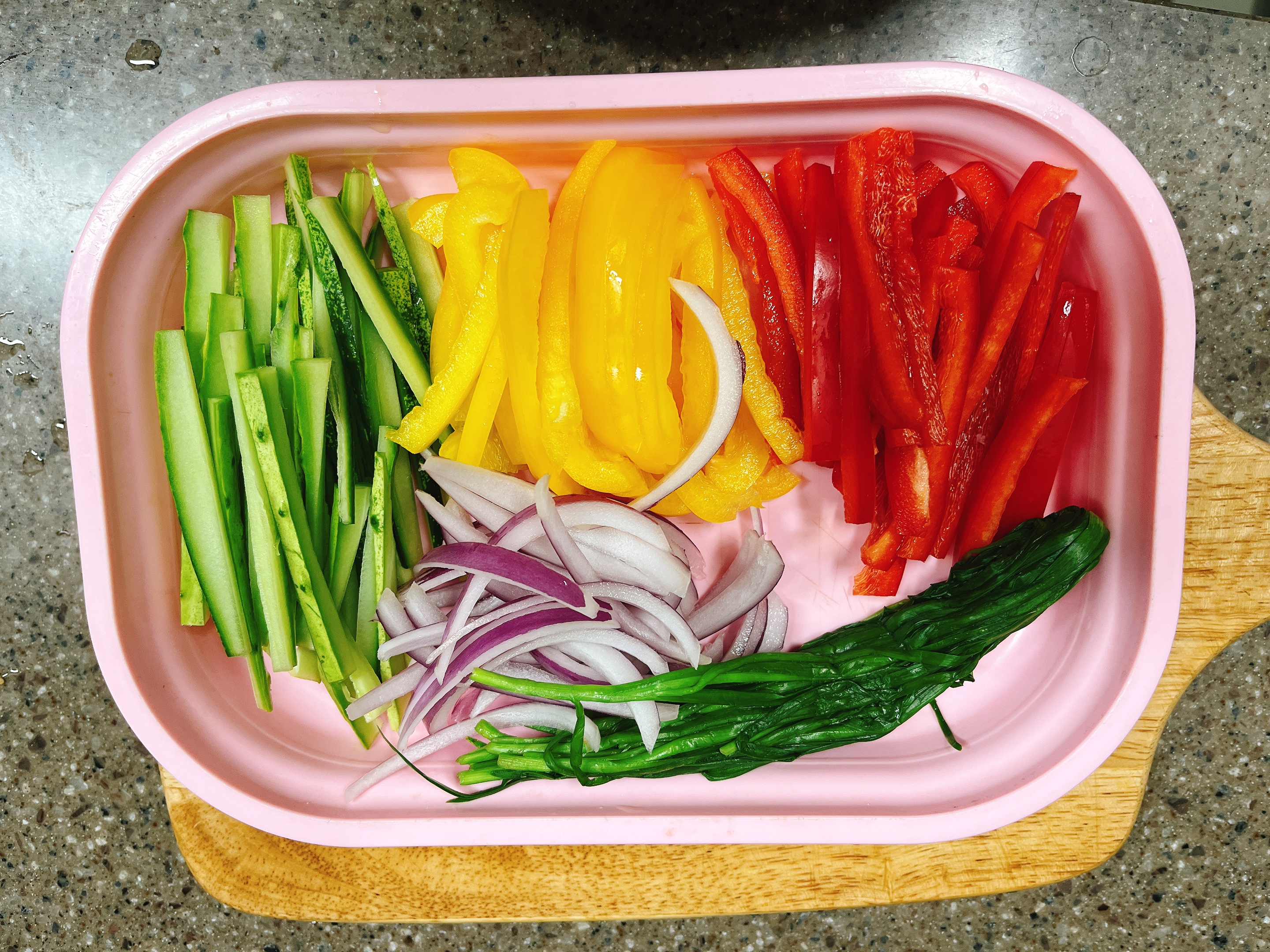 파프리카, 양파, 오이를 원하는 만큼 올리고,