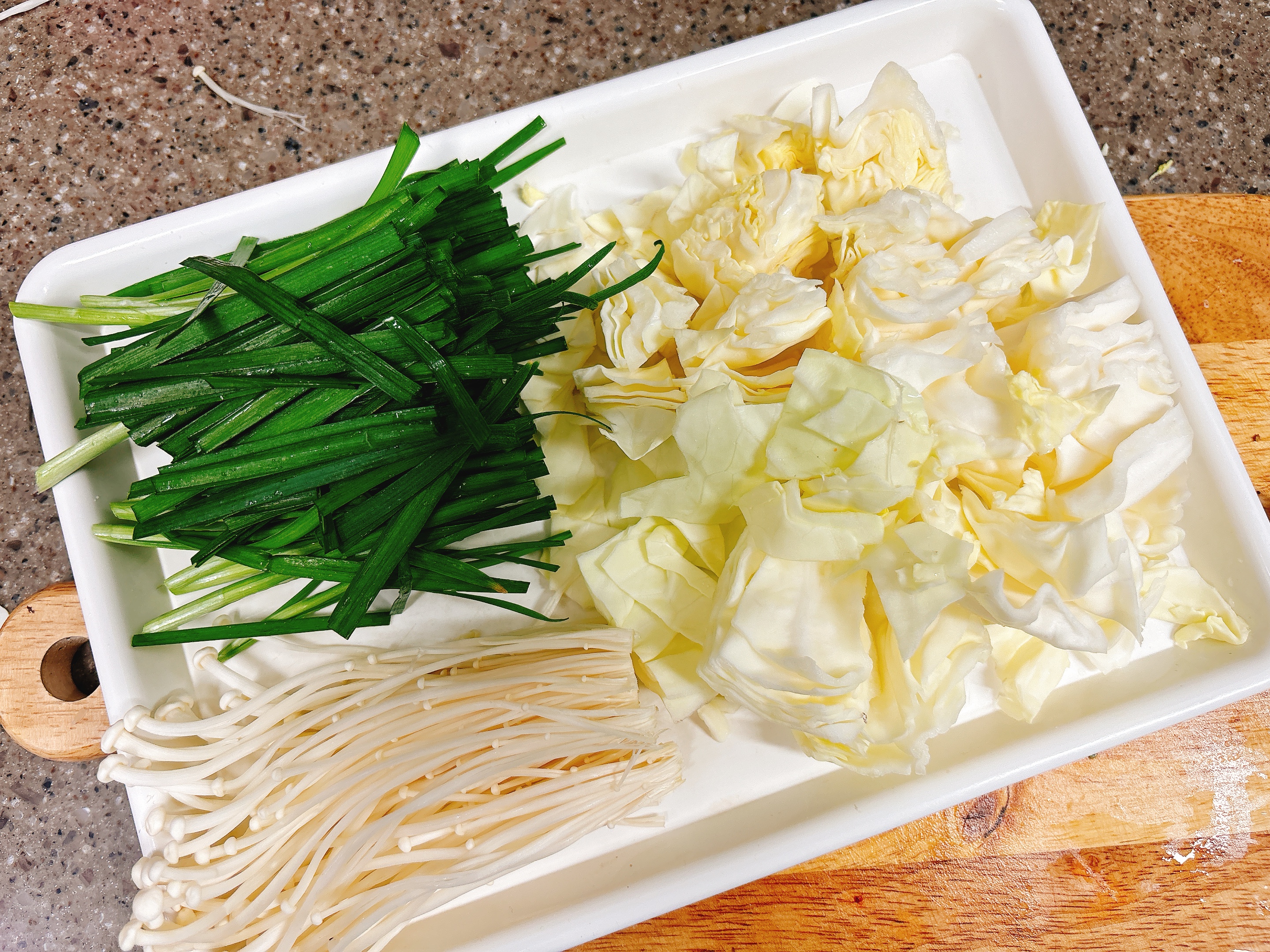 부추도 손질후 먹기 좋은 길이인 6~ 7센티로 자르고,