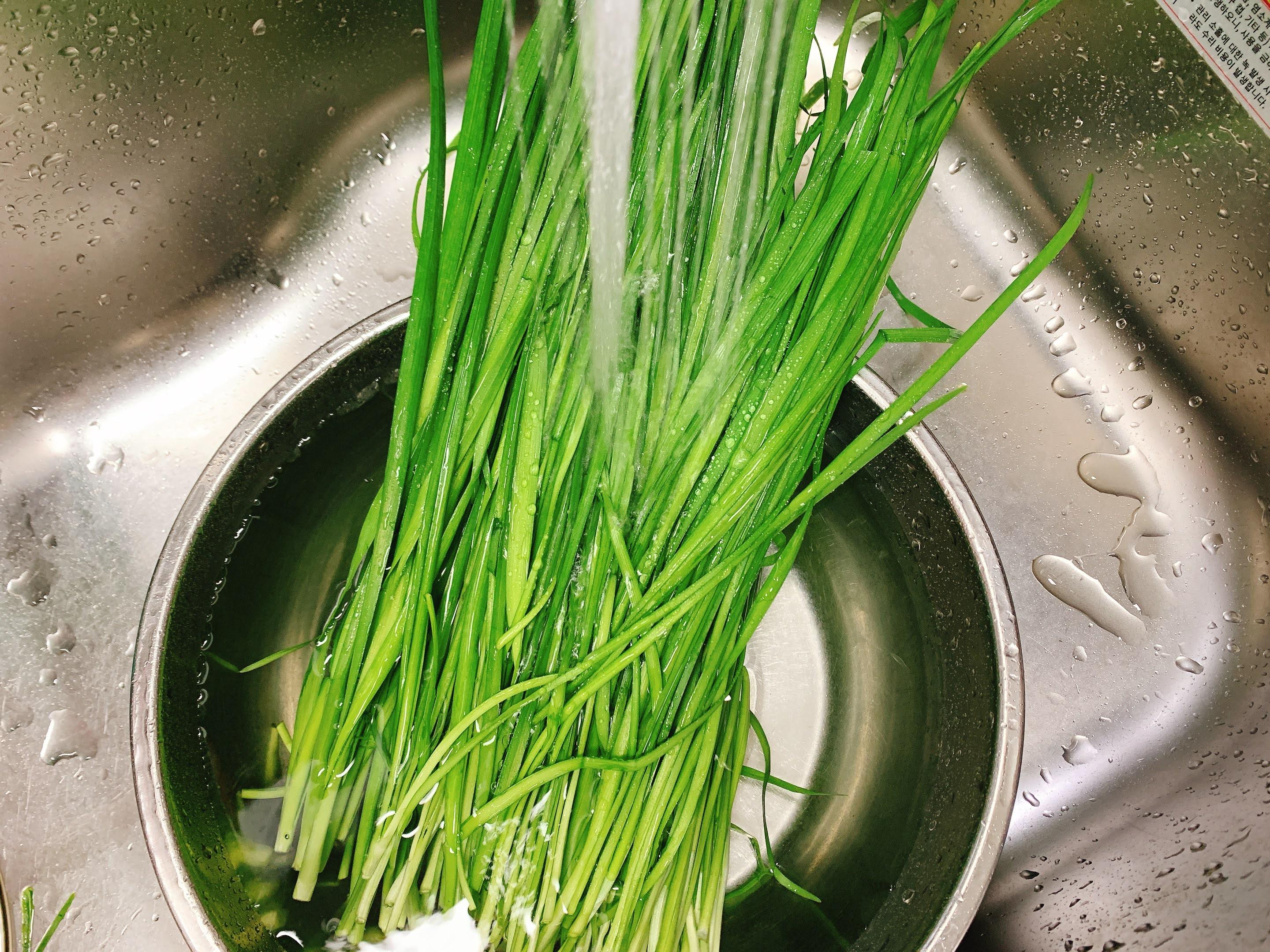 물기 빼두었던 부추는 길어서