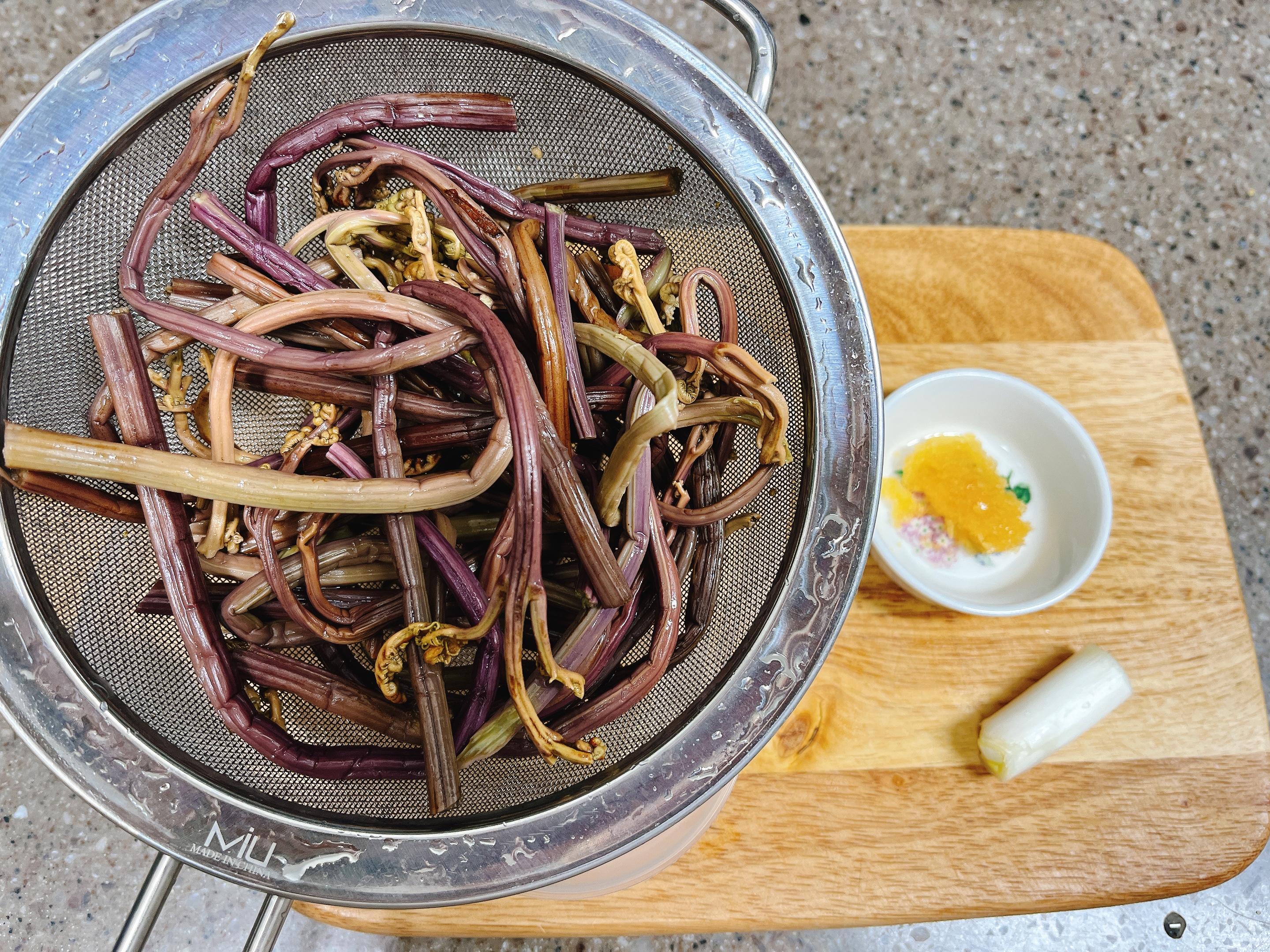흐르는 물에 씻어 물기 털어낸 고사리는