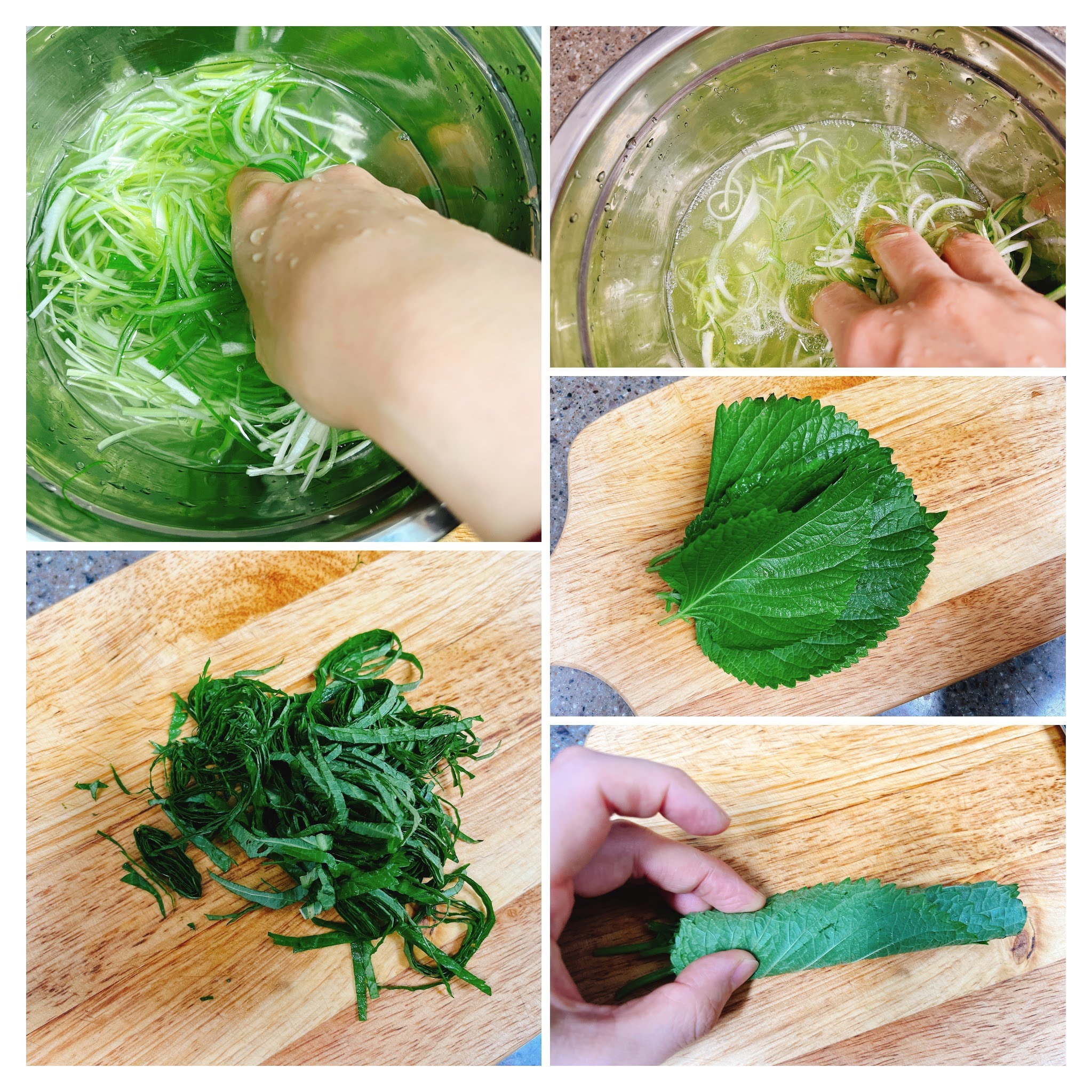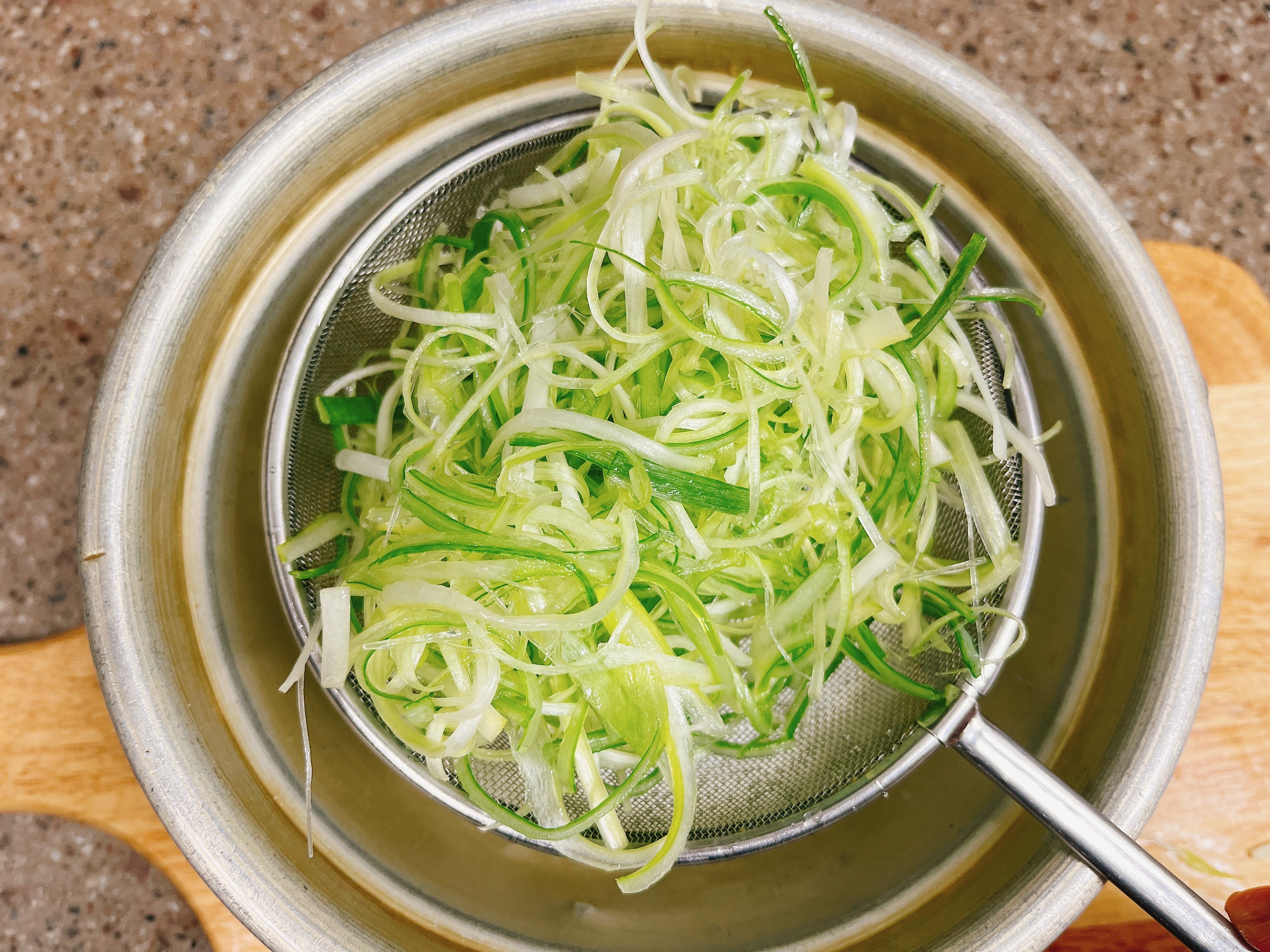 흰부분은 심지부분을 제외하고 얇게 채썰고,